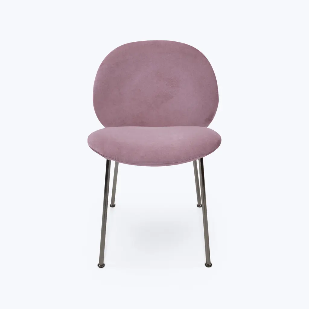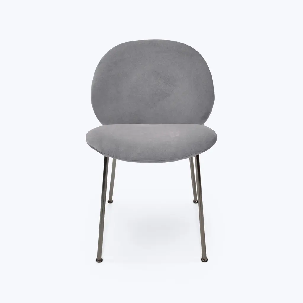 The Ola Dining Side Chair by Saba Italia combines sculptural simplicity with refined comfort, embodying the effortless elegance of Italian design. Shown in a washed velvet, this contemporary chair features a rounded silhouette with a subtle nod to Art Deco, achieving a graceful balance between geometry and softness. Measuring 21.3 inches wide, 23.3 inches deep, and 31.5 inches high, the Ola Dining Side Chair is perfectly proportioned for both modern and classic dining spaces. Its black nickel legs introduce a sleek, industrial contrast to the plush upholstered seat, while the metal frame adds a clean, graphic edge that accentuates its sculptural form. Designed for both beauty and practicality, the fully removable covers allow for easy care and effortless updates, ensuring lasting elegance over time. Handmade in Italy, the Ola Dining Side Chair pairs beautifully with the Ola Dining Armchair and Saba Italia’s Teatra Dining Table, creating a cohesive and elevated dining setting that celebrates craftsmanship, comfort, and contemporary style.