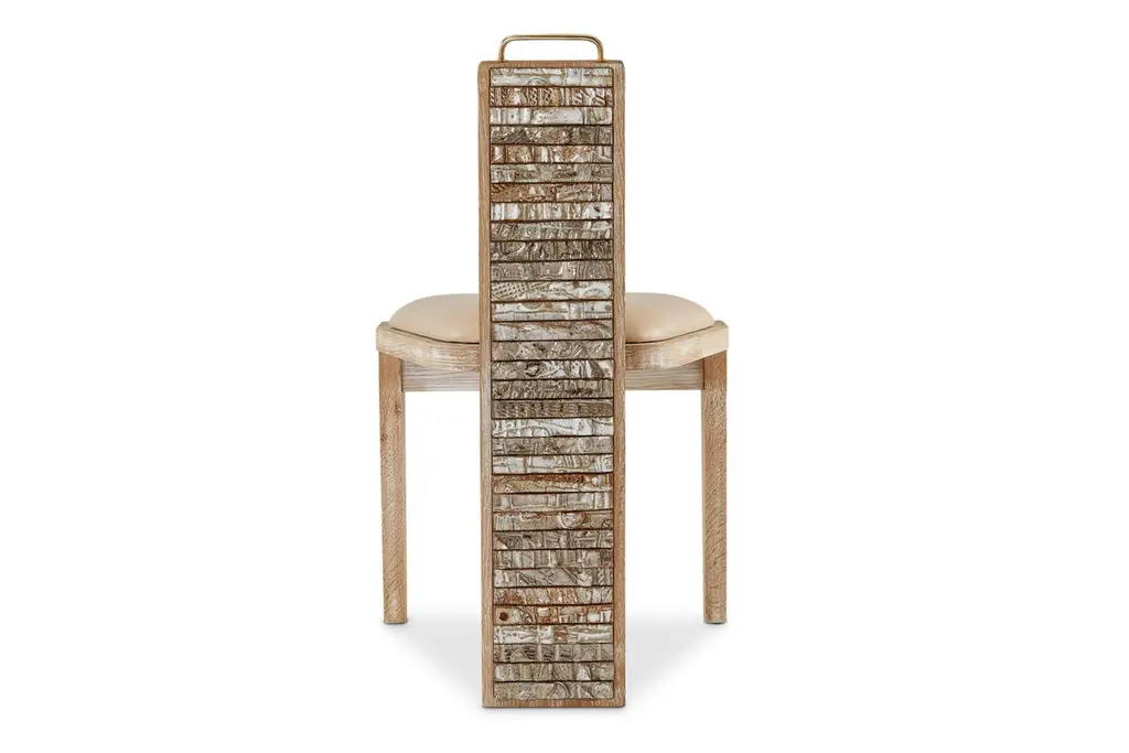 Olifant black dining chair by Egg DesignsDimensions: 50 L X 53 D X 84 HMaterials: Ceramic, Brass Handle, Black Cerused Oak, Leather UpholsteryFounded by South Africans and life partners, Greg and Roche Dry - Egg is a unique perspective in contemporary furniture inspired with a soul that’s deeply rooted in the African continent.We believe Egg has a distinctive African design dialect.We dream that our products will not only be judged by their function and form, but by the beauty of their eternal narrative.In everything we create we must answer the question, “Is it Egg enough?”Egg, is a spirited blend of heritage, passion, meaning and African soul. It stands the test of time. It’s curiosities that make you smile. It’s love and truth that can be seen from afar and equally found in the minutest details. That’s why every piece we craft comes from Africa and carries within it a part of the African soul. We’re a melting pot of tribal craft, African heritage and modern luxurious expression.“If it’s not Egg enough, it’s not worth doing!”We have widened the prism of contemporary African design in Modern Antiques, high-end Furniture, lighting and custom interiors inspired by an African provenance for a modern, international customer.