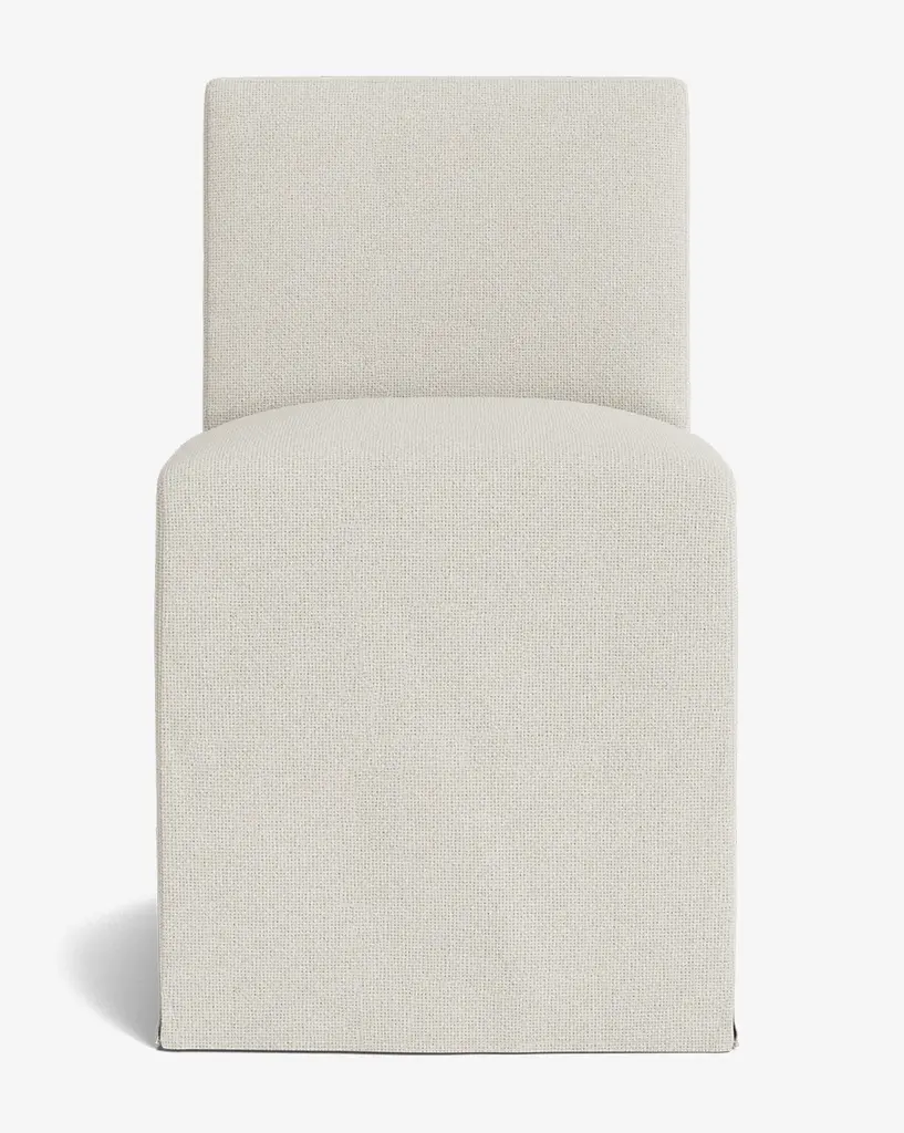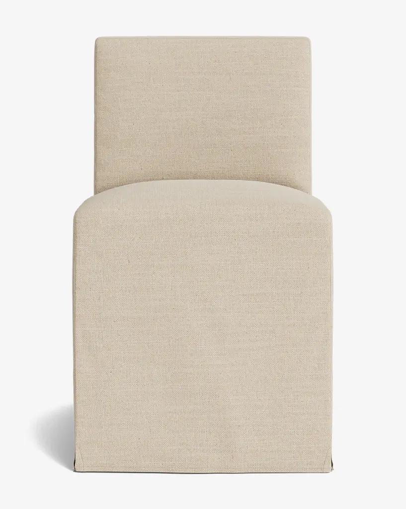 Classic and subtly dramatic, the Olivier Slipcover Dining Chair is upholstered in your choice of beautiful high-quality fabric. Its simple construction creates an elongated look and elegant feel. With cushions filled with a feather and down blend, this dining chair provides both comfort and elevated style.