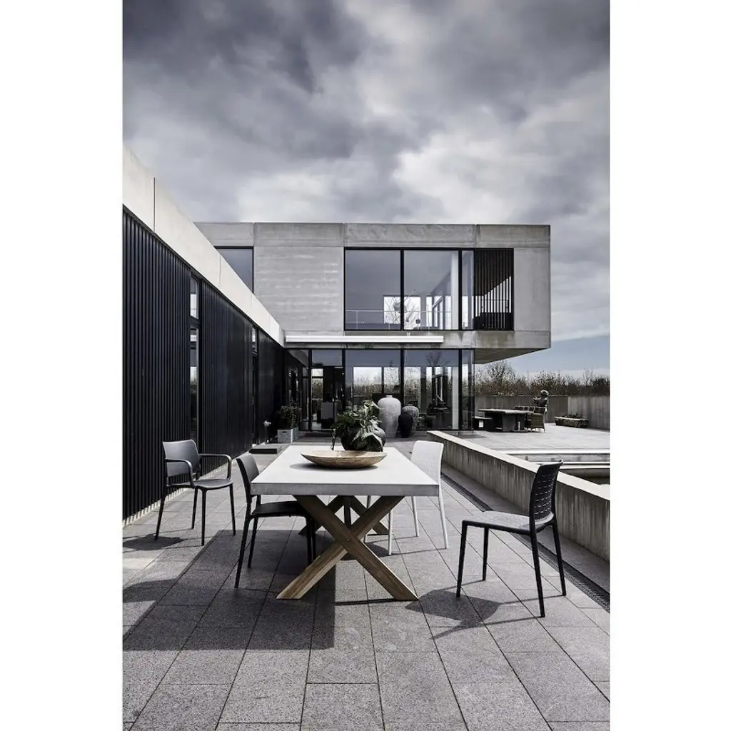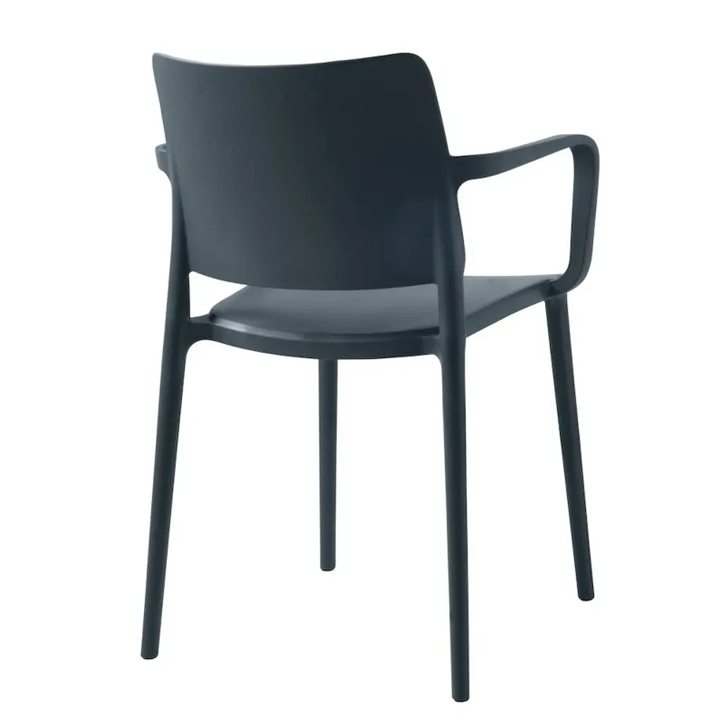 The Cleo armchair is a stackable design that enjoys all the benefits of simplicity and uniformity in a single form with fluid lines and a lightweight profile. Made with the latest technology in fiberglass filled polypropylene that is UV resistant, this patio dining chair is suitable for outdoor and indoor use. The fiberglass reinforced monobloc design makes it Ideal for residential as well as contract and commercial usage. Available in multiple colors this modern chair is easy to move, stackable, and entirely recyclable.