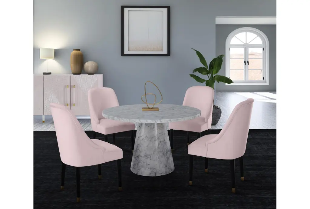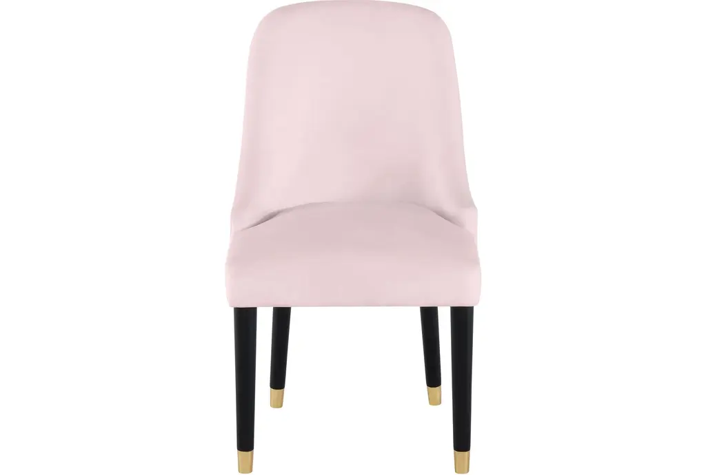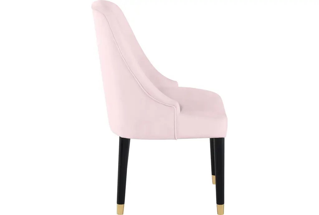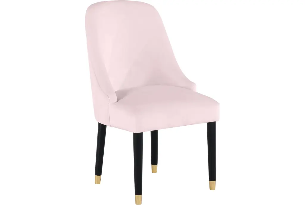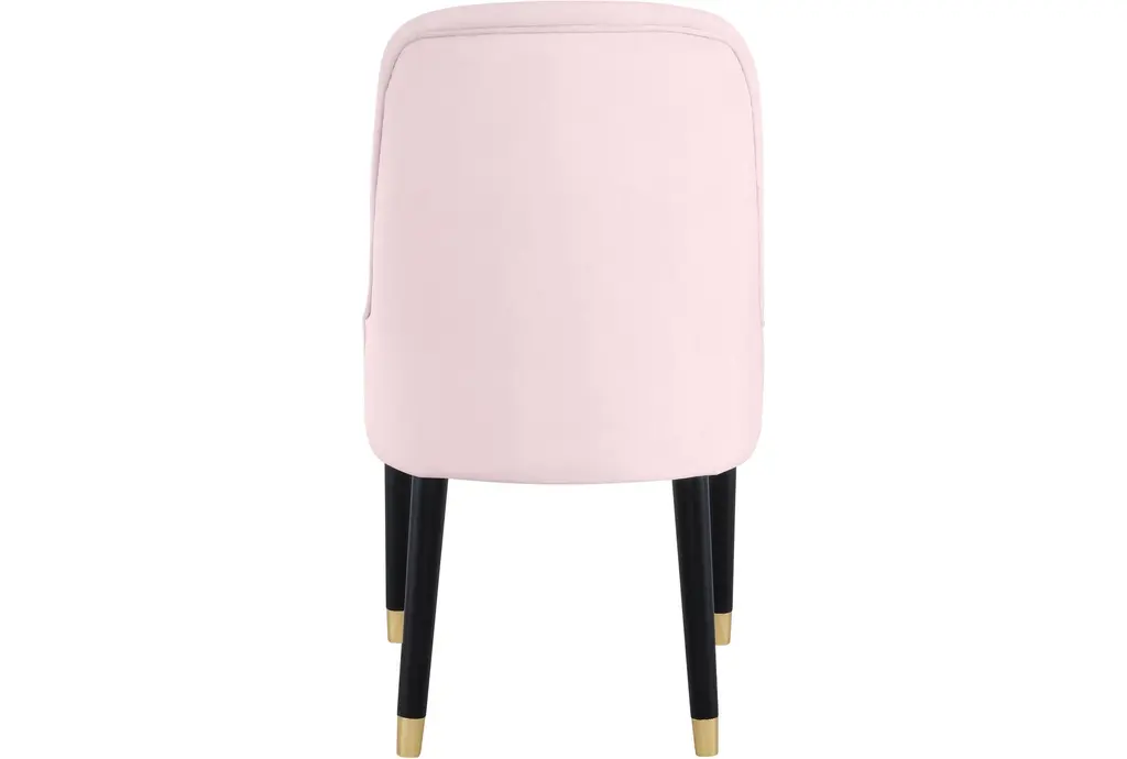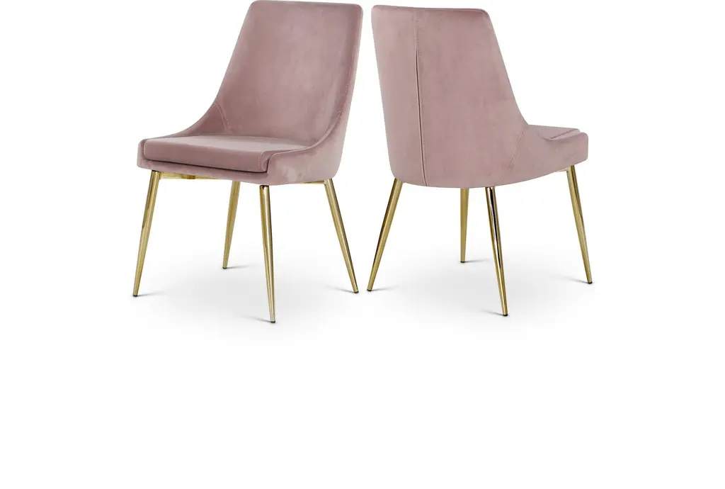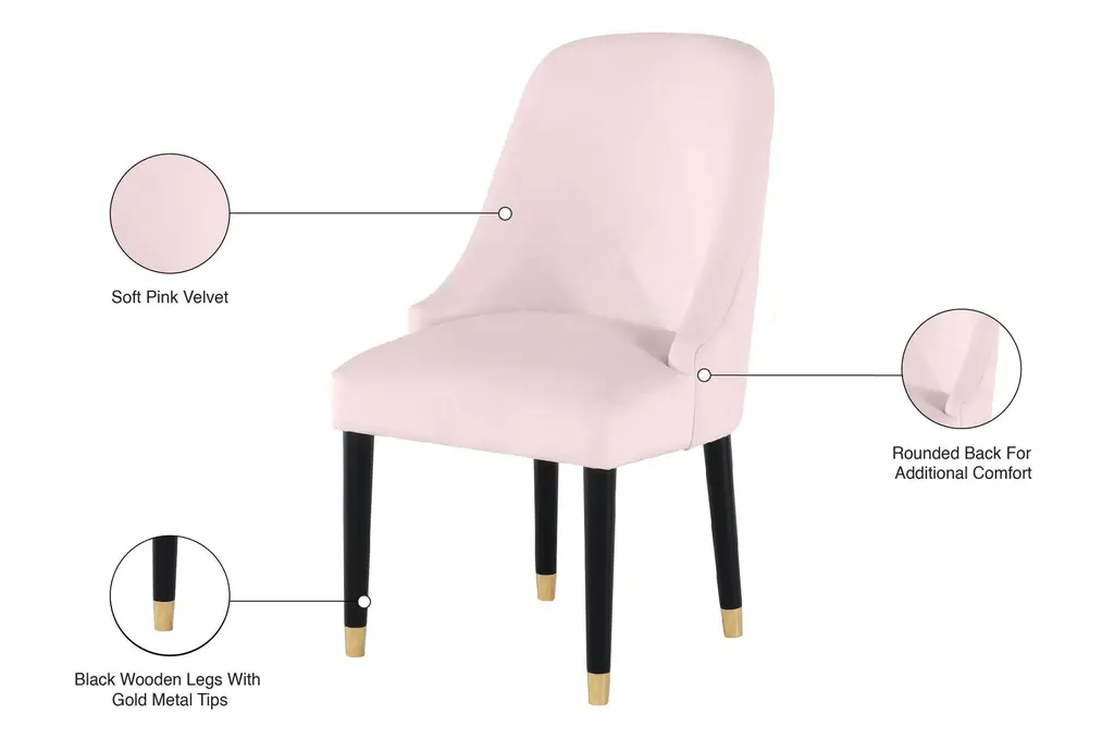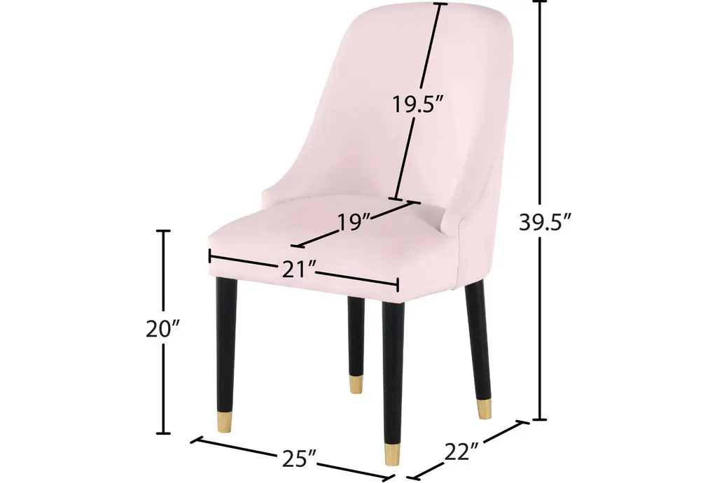 The Omni Pink Velvet Dining Chair with Espresso Finish Set of 2 brings a touch of modern sophistication to your dining room. The soft pink velvet upholstery offers a plush and comfortable seating experience, while the espresso finish legs add a chic contrast. Designed without arms, these chairs provide a sleek and unobtrusive profile perfect for any dining space.