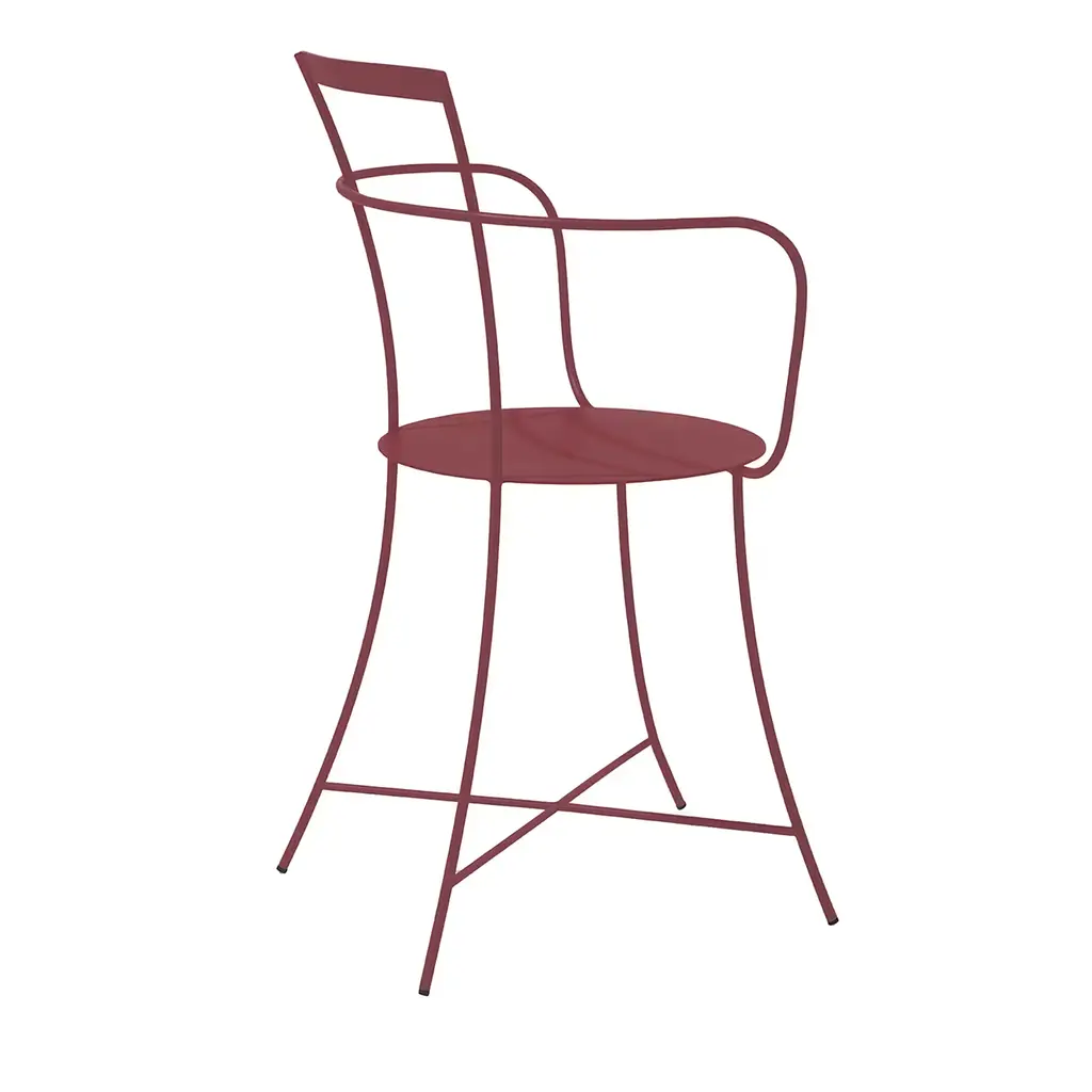 Undeniably refined outdoor seating. The Opera+ Armchair, Set of 2 by Fermob uses a minimum of materials to achieve maximum comfort and a truly elegant decorative effect around any dining table. A single continuous length of steel rod is carefully bent to create the arms and outline of the backrest, while more curves of steel rod form the rest of the backrest and legs. In-between, a round of steel sheet provides a smooth and comfortable seat.