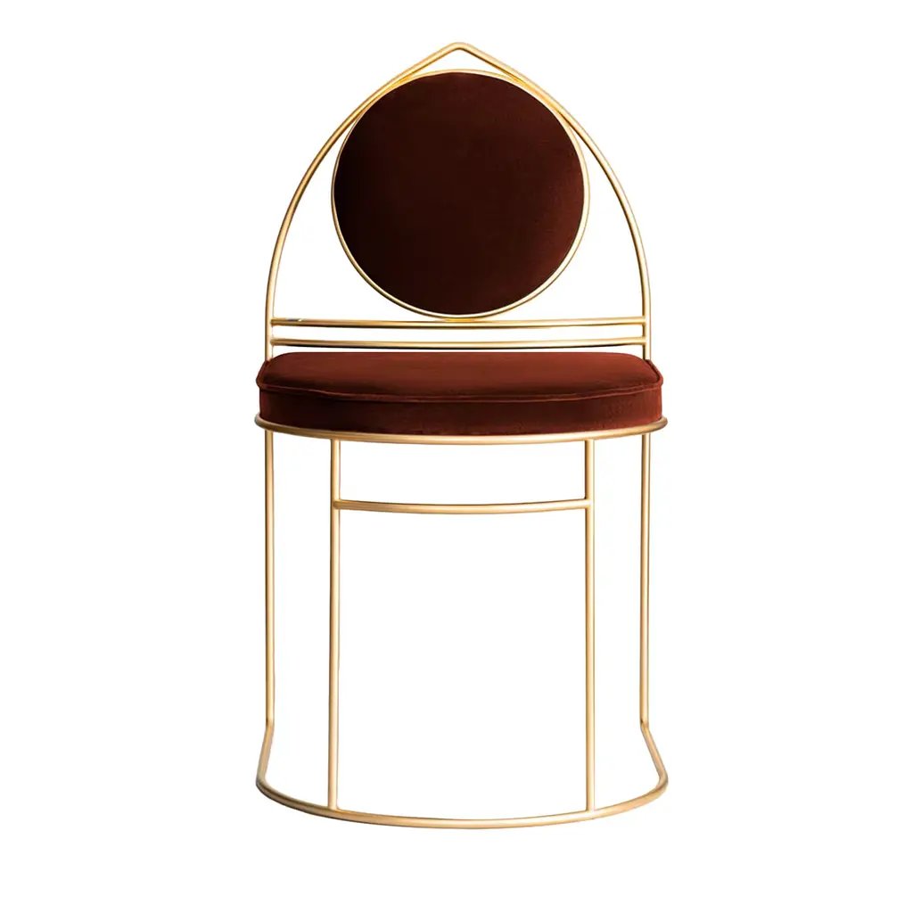 This is the first time that Bohinc explores a design favourite; the chair.In the collection, Lara Bohinc develops her stellar themes, finding inspiration in planetary and lunar orbits, whose gravitationally curved trajectories drive the lines and shapes of the chairs. Constructed from thin square rod, the chairs are elegant, minimal and delicate.The Orbit chair is available with or without circular armrest.The chair is made in brushed brass and Kvadrat wool fabric. Please note that even though brass is protected by clear varnish, it may still oxidise over the years which is a natural ageing process. The chair is made by hand in Portugal.Each piece of furniture is individually numbered and comes with a signed Certificate of authenticity to prove that it is Bohinc Studio original.Material: brushed brass and kvadrat wool fabricDimensions: width 45cm, height 89cm, depth 55cmWeight: 14kg.