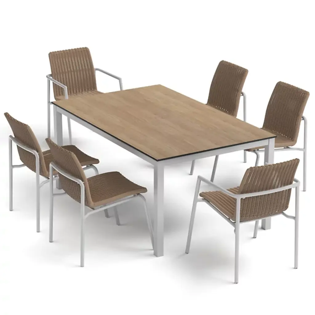 Modern outdoor seating with the rustic texture of wicker. And what’s even better? This wicker is made to last in the elements. The Orso Outdoor Side Chair - Set of 4 by Oxford Garden uses a polyethylene resin to create a durable, water-resistant and realistic-looking synthetic wicker seat and back. It sits on an aluminum bar base, which offsets the natural look of the wicker with its sleek, minimalist lines and smooth powder coated finish.