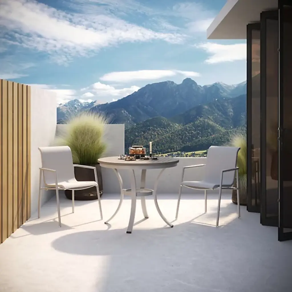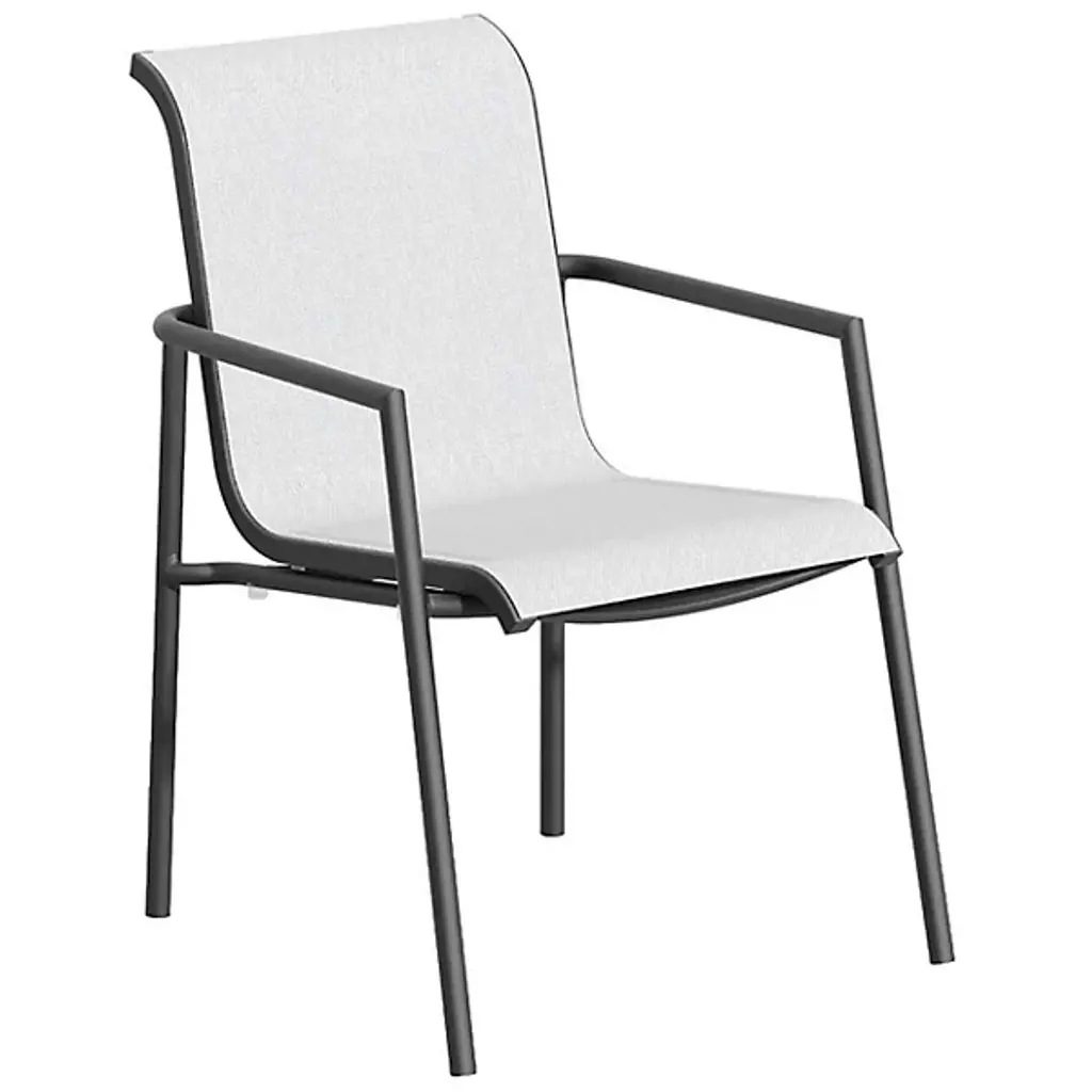Smooth seating for contemporary outdoor dining areas. The Orso Sling Outdoor Armchair - Set of 4 by Oxford Garden features a tubular aluminum frame that’s powder coated to make the already durably material even more so against moisture and impacts. The frame has wave-like curves providing the outline of the seat and back. Across those waves, a panel of soft, weather-resistant sling material is stretched tautly to provide strong, ergonomic and breathable support.