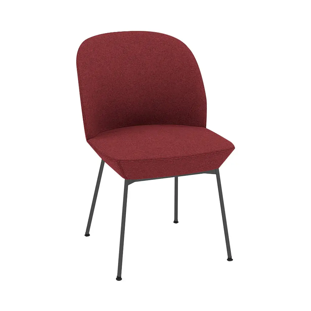 With its molded-foam cushioning and clad in a refined textile of choice, Mutto’s side chair defines soft power. Oslo melds a distinctive geometric silhouette with an emphasis on comfort that equally suits spending hours at a dining table or work-desk. Available with anthracite black or chrome legs, the curved-back design lends an appealing sheltering quality to the seating.