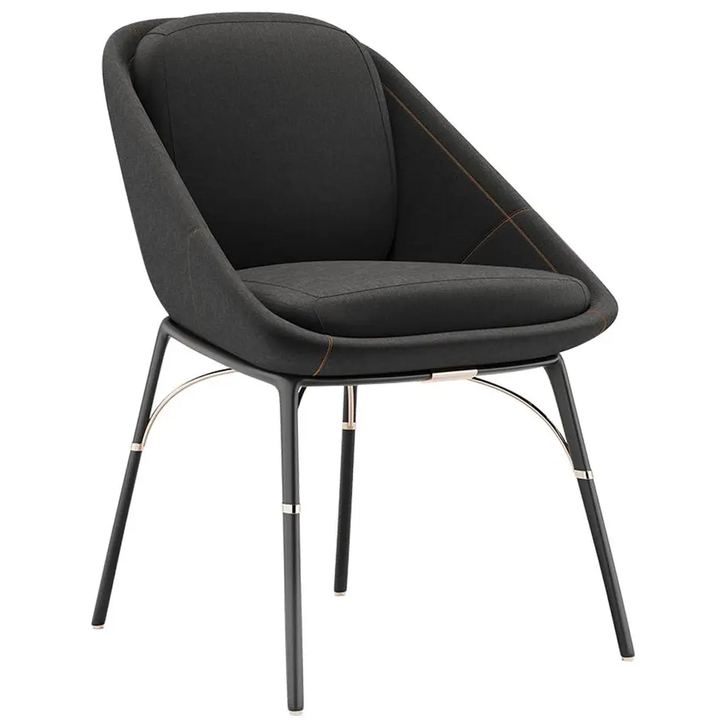 Nero, outdoor dining chairThe Nero dining armchair embodies modern elegance, with its clean lines and sculpted form. Thoughtfully designed with refined lines and premium materials, this chair strikes the perfect balance between bold design and timeless appeal, making it a statement in outdoor dining areas.Contemporary outdoor dining chair made with:Structure: Legs black matte lacquered stainless steelMetallic details in copper-plated stainless steelUpholstery: Acrylic fabric and outdoor leatherNero collection found its appeal in the apparent contradictions, a well-formed torso, and slim, elegant legs - in weather-resistant fabric and a powder-coated metal structure, providing a comfortable outdoor dining chair for any contemporary outdoor setting.Find in the Nero collection the right pieces to go with your dining chair. Dining armchairs are available for the tabletop, as well as round and rectangular dining tables. In addition to the dining set, we have a bar chair to complement the space. All materials are from premium suppliers. Protection cover included.