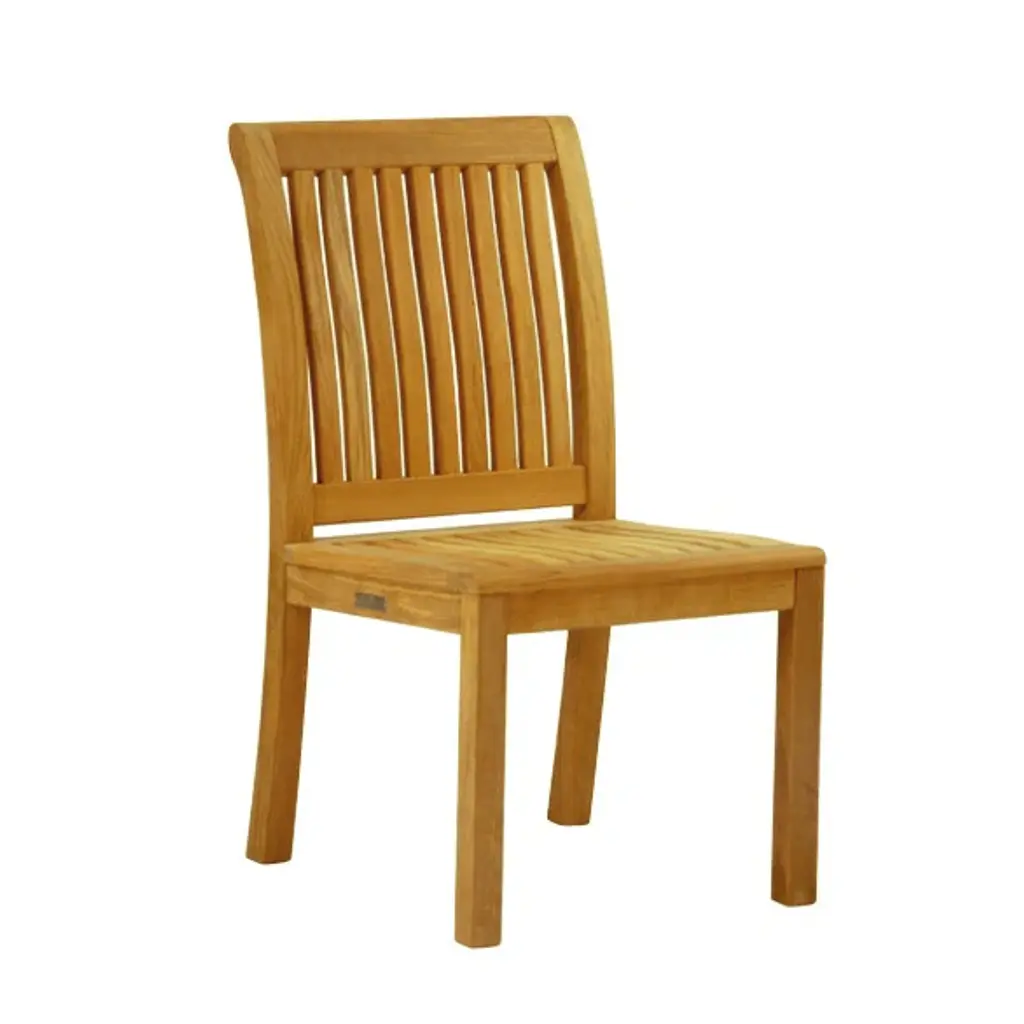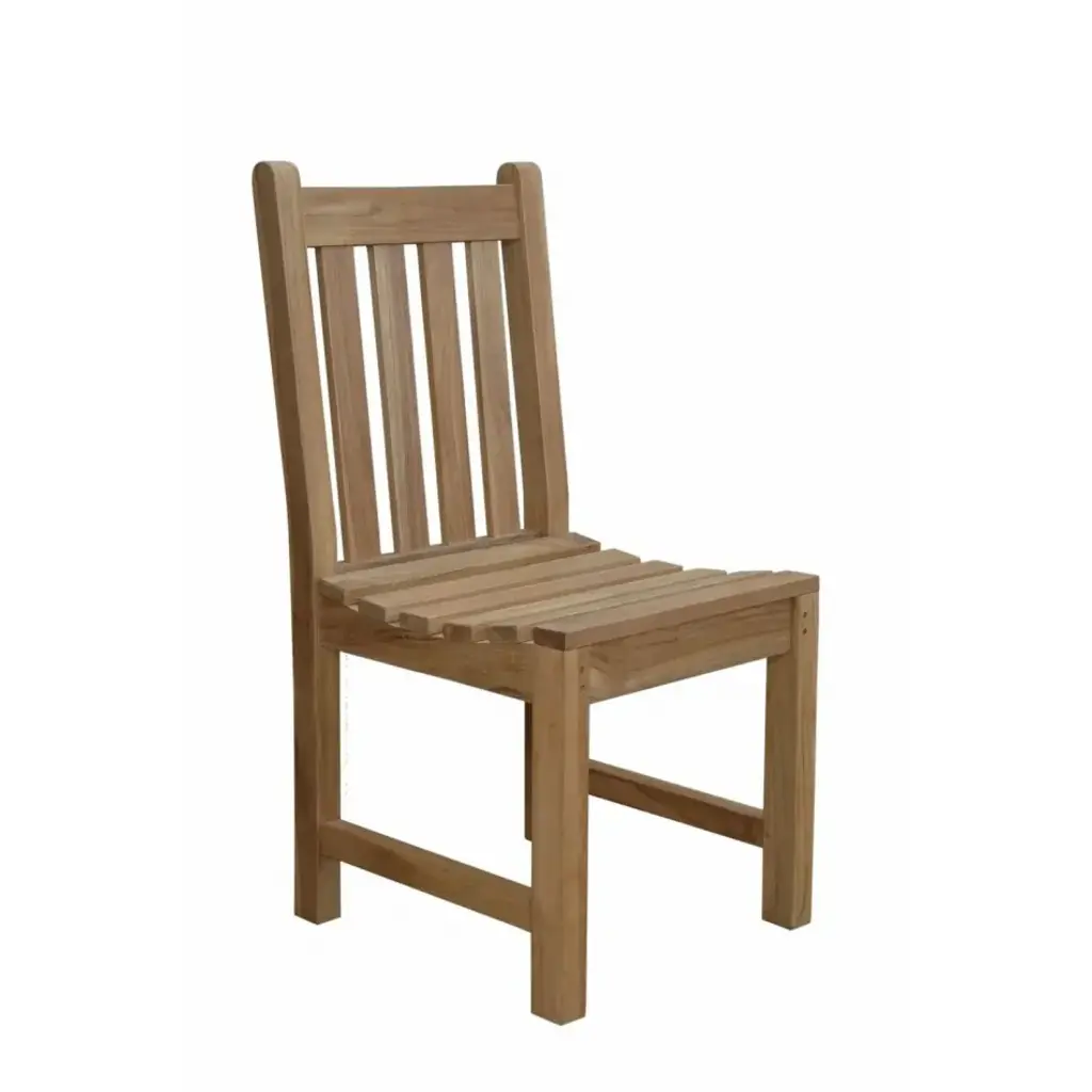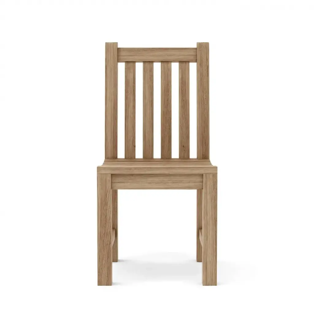 This “Classic Dining Chair” will never go out of style but quietly blends with any décor or setting. The seat is sculpted with a dip in the center for added comfort and is very sturdy with a quality build. Made with kiln-dried, Grade-A Teak wood sanded smooth and unfinished, it is the perfect material for weathering the outdoors. This is a beautiful and functional piece of furniture for your patio or terrace. Place this chair in your backyard with a dining table for an outdoor dining experience. Quality made to last.