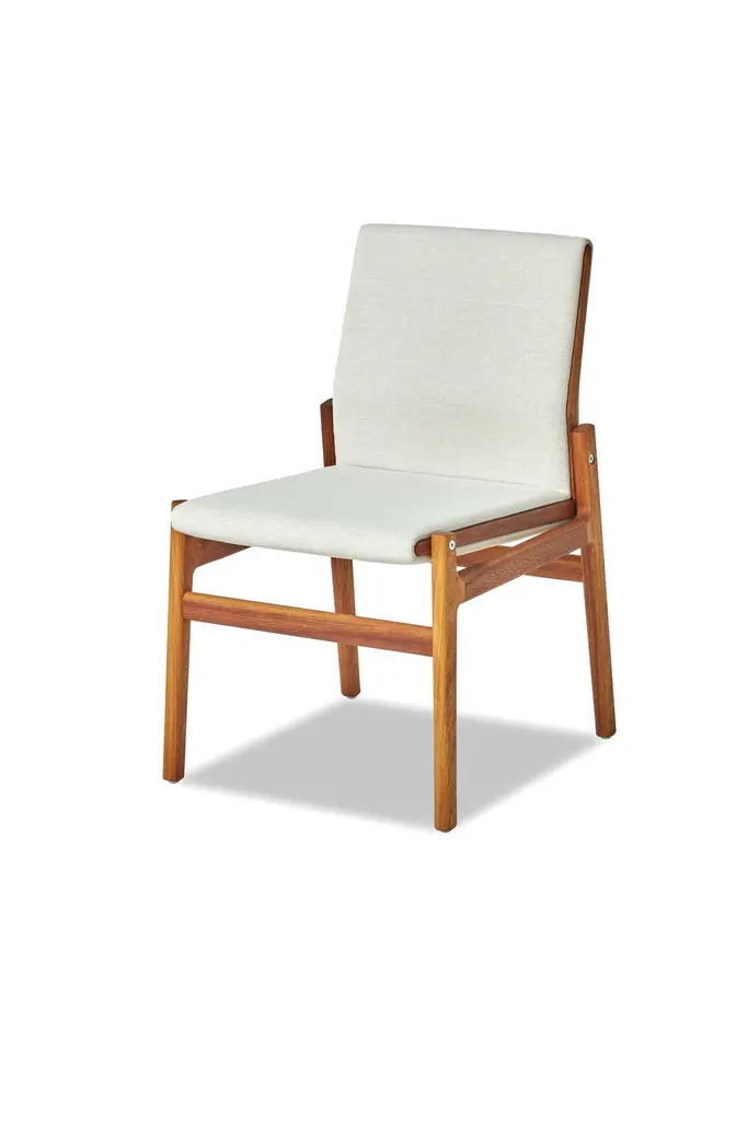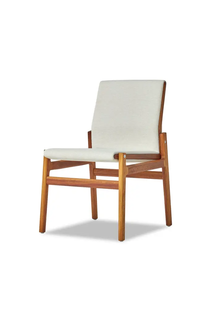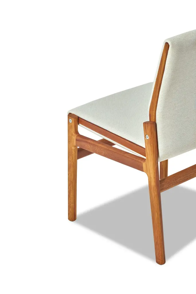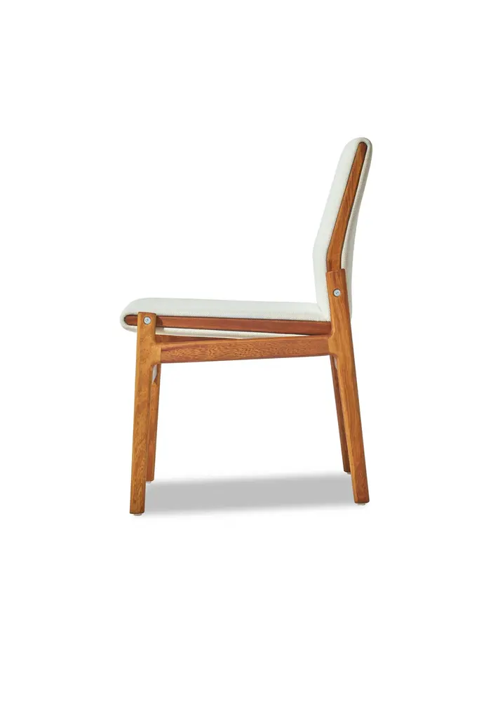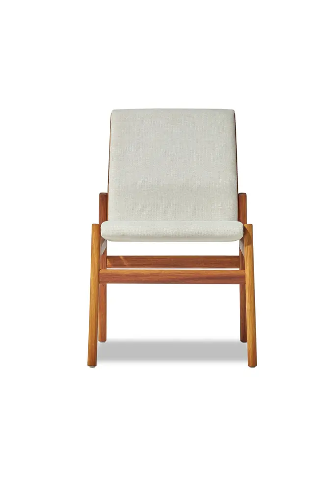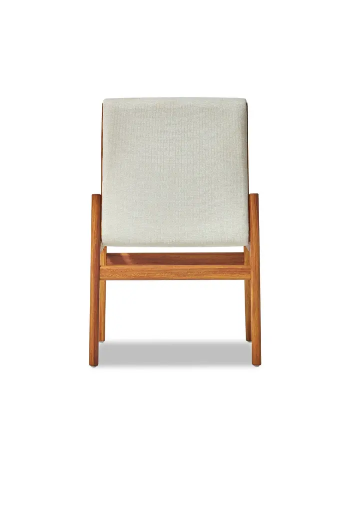 The Ivar Chair by Contemporary Design Works is a refined fusion of elegance, craftsmanship, and ergonomic comfort designed to elevate contemporary outdoor living. Handcrafted in Bodrum, Turkey, from solid Iroko wood, Ivar offers enduring strength, warm natural tones, and exceptional resistance to the elements.Available in both armchair and armless versions, its gently angled backrest and precisely proportioned seat provide excellent lumbar support and comfort for extended dining. Upholstered in performance outdoor fabrics offered in white and Taupe, fabric is quick-drying, UV-resistant, and soft to the touch.Its clean silhouette and warm materiality make Ivar a timeless addition to a range of outdoor environments, from open terraces and covered patios to garden dining settings. It pairs seamlessly with the Klein and Port Dining Tables, forming a cohesive, inviting, and sophisticated outdoor dining experience.Custom finishes and upholstery options are available upon request.