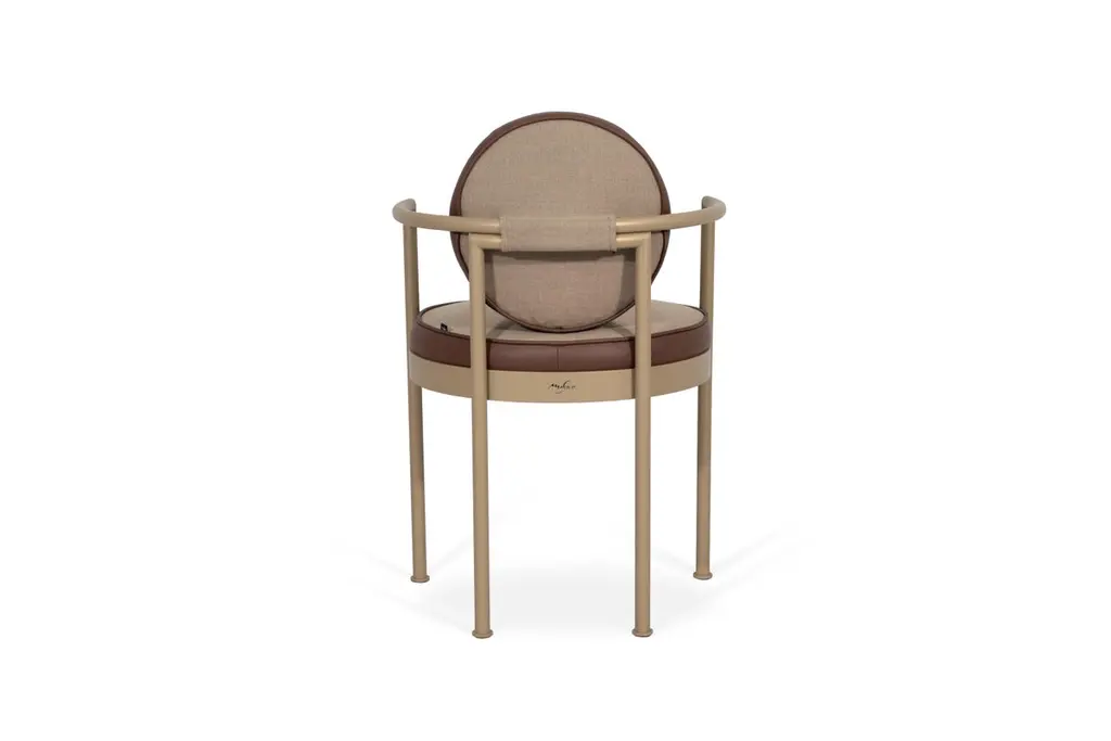 Outdoor Dining Chair With Leather Details And Gold Structure