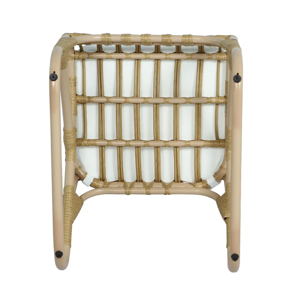 Premium Construction for Exceptional Durability: This outdoor chair features a hand-woven rattan design paired with a durable, rust-resistant iron frame for long-lasting strength. Its petal-shaped back offers both style and comfort, while the frame supports up to 400lbs. Adjustable foot pads allow for height customization, ensuring stability on uneven surfaces. Built to endure the elements, this chair maintains its beauty and functionality for years, perfect for patios, gardens, or balconies Comfortable Cushions with Easy Maintenance: Enjoy comfort with the chair’s 1.2-inch thick cushions, covered in washable polyester fabric for easy cleaning. The durable material stays soft and vibrant outdoors. Secured with magic tape and straps, the cushions won’t shift during use, offering the perfect balance of comfort and convenience. Versatile and Stylish Design for Any Outdoor Space: Available in two stylish colors, this chair complements any outdoor space with its modern design. The petal-shaped backrest adds a unique touch, while the hand-woven rattan brings texture and style. Perfect for patios, gardens, or balconies, it’s sure to enhance your outdoor décor. No Assembly and Effortless Care: This outdoor chair arrives fully assembled, allowing you to enjoy it immediately without the hassle of setup. It’s easy to care for with just a quick wipe-down, and the removable, washable cushions make cleaning a breeze, keeping your chair fresh all season long. Dimension&Notice: Overall Size: 17.75x21.75x34.50inch(WxDxH) ; Seat Size:17.75x16.00nch(WxD);Seat Height:17.50inch;Back Height:17.00inch; Weight Capacity: 400 Pounds.Items may slightly differ from photo in terms of color due to the lighting or your monitor's display. For more size, please refer to size image.Please feel free to contact us if there are any issues.