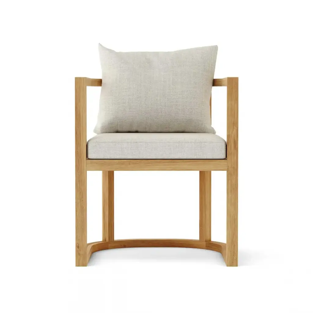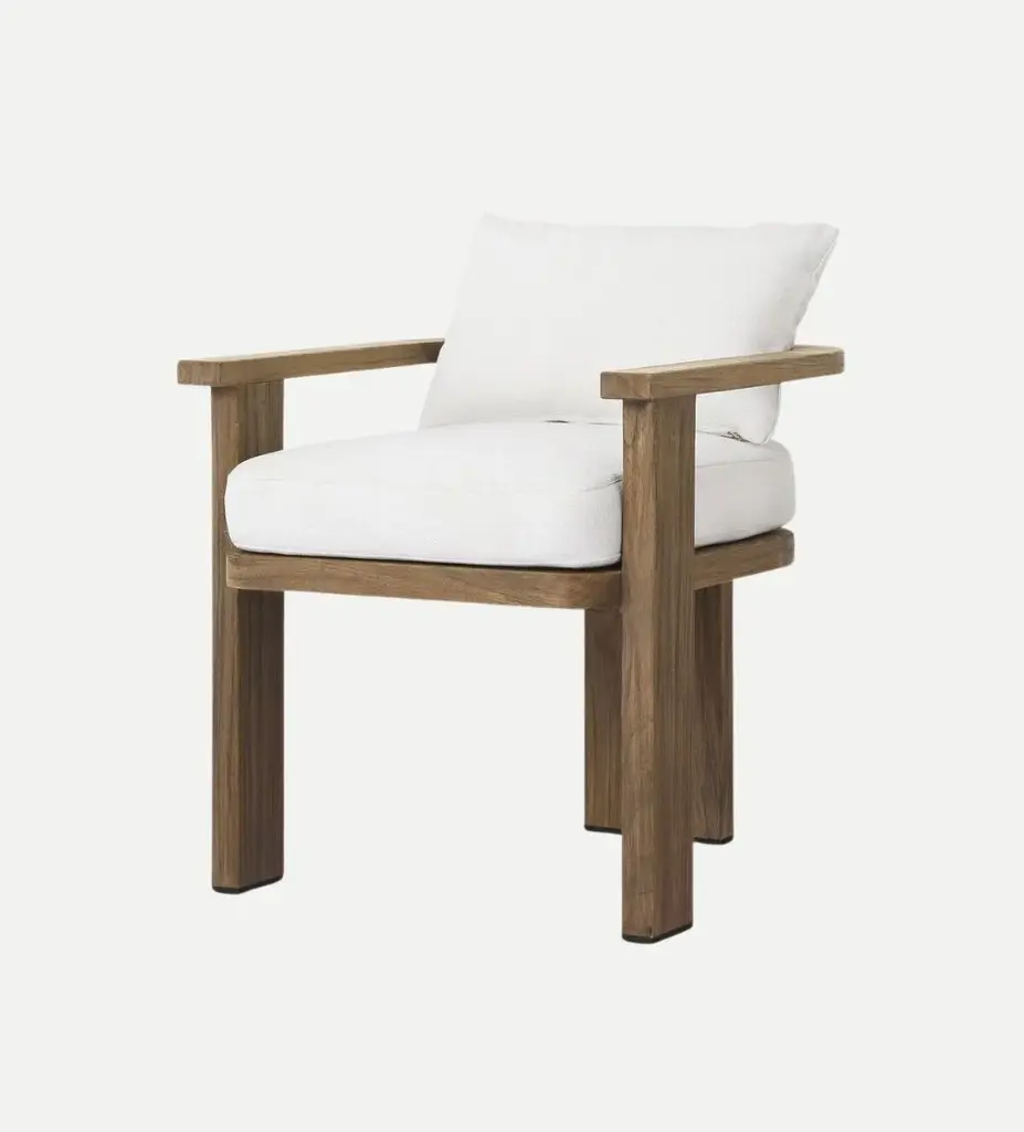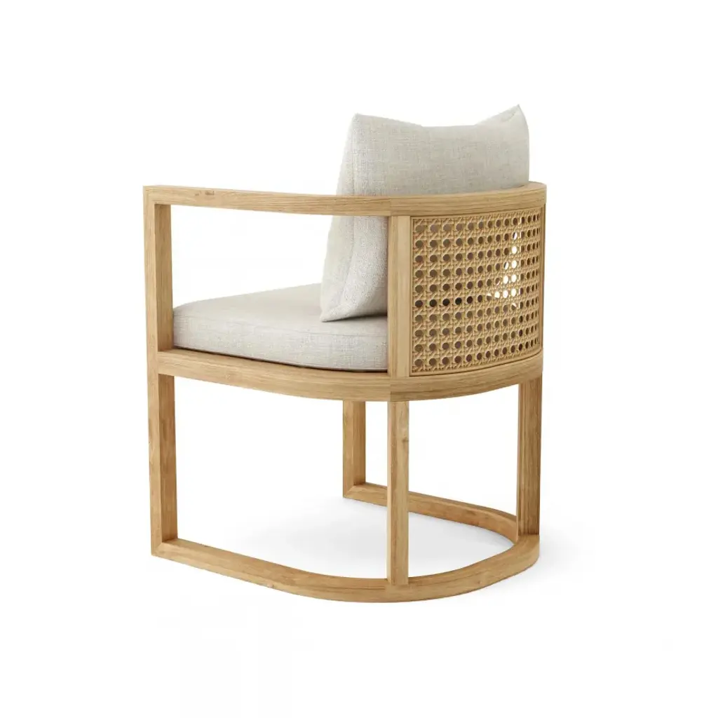 Expertly crafted and shaped to exquisite design the Junus Dining Armchair made of premium unfinished teak and synthetic wicker is a spectacular chair for outdoor dining. Featuring 2 ½” thick cushions from Sunbrella Fabrics, take a seat in comfort as you enjoy outdoor dining with family and friends. Purchase the Junus Dining Armchair as a standalone product or add pieces from the collection as the Junus Dining Table, Lounge Armchair, Sofa, Sun Lounger and Coffee Table.