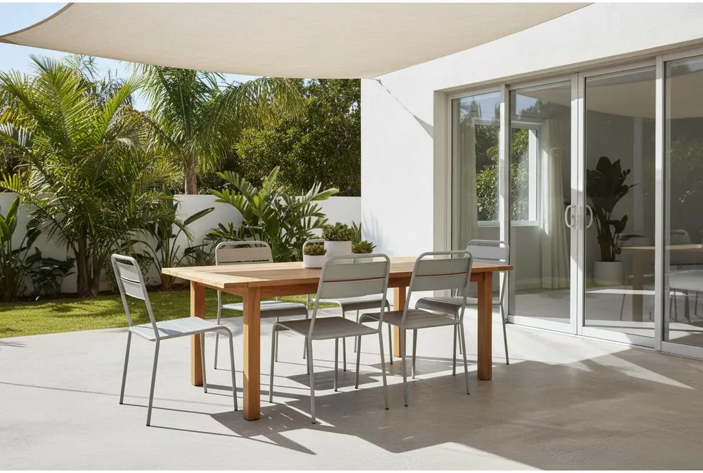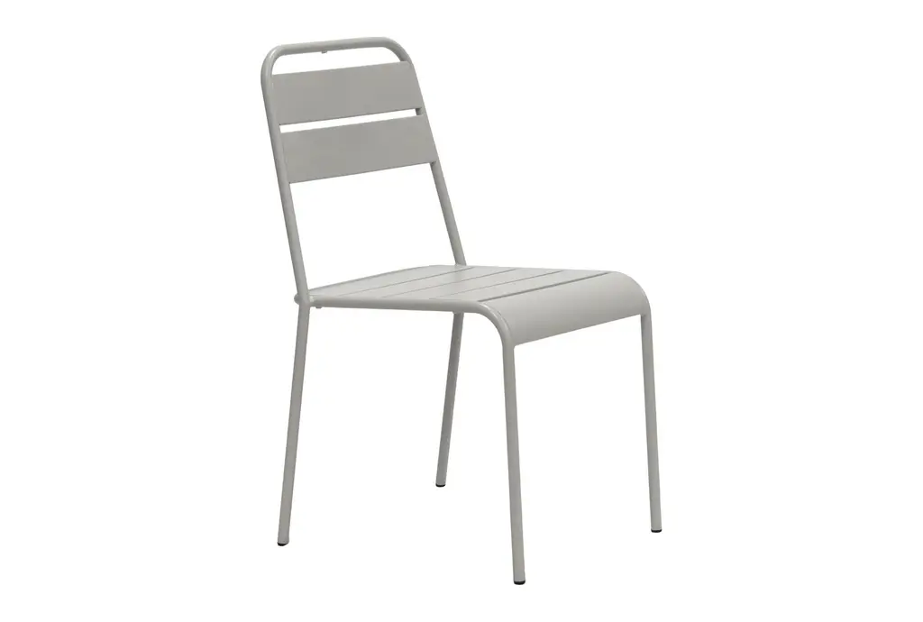 Outdoor Modern Light Grey Metal Dining Chairs Set Of 2 | Stackable | Armless