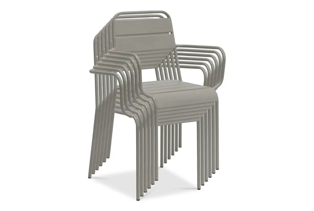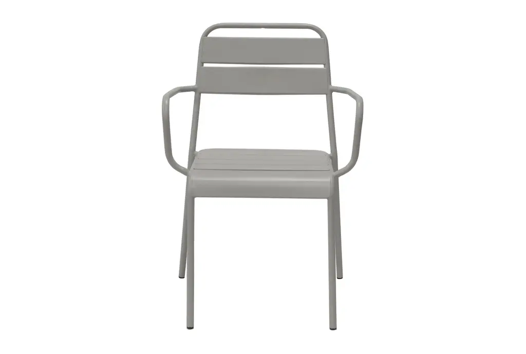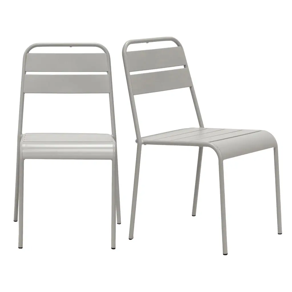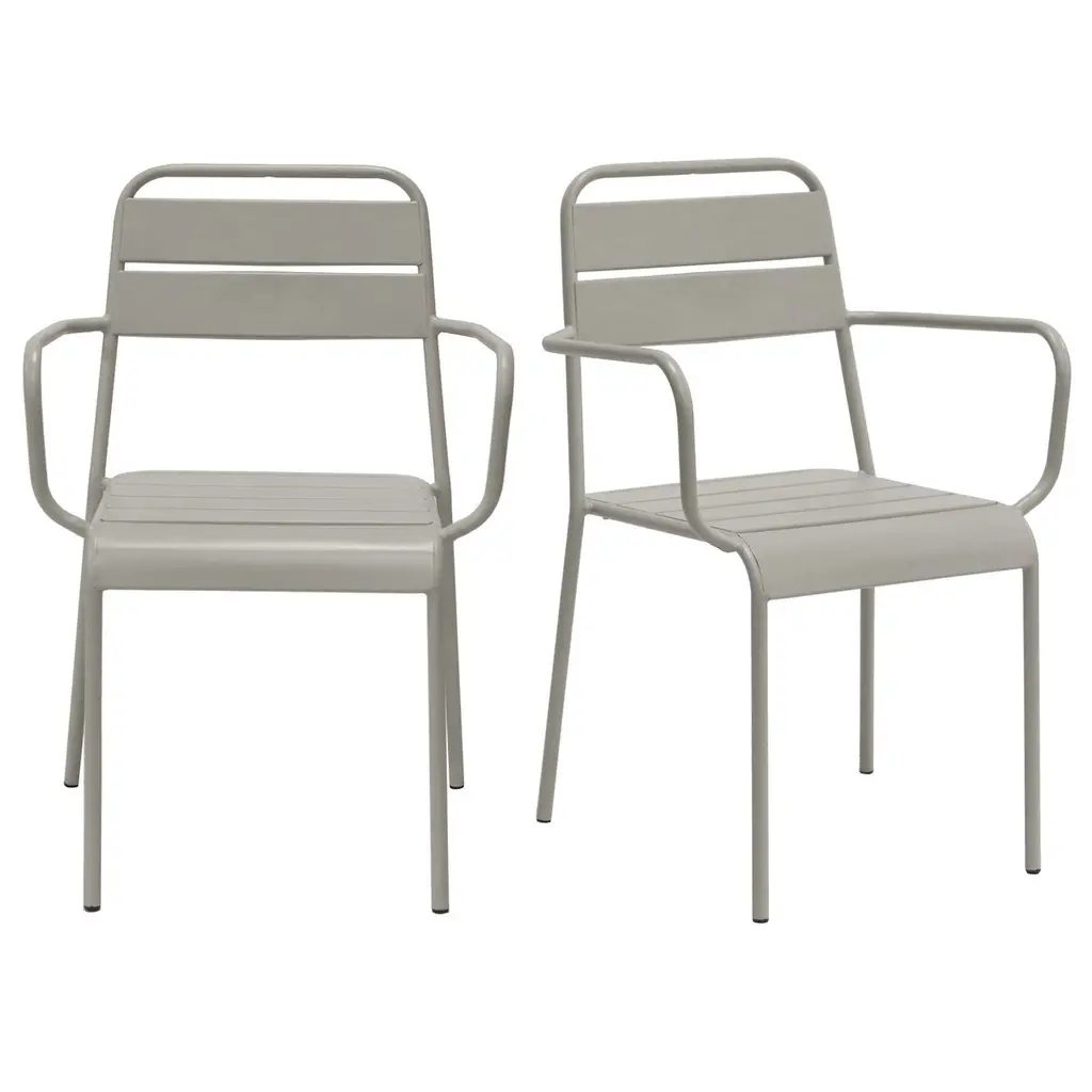 Outdoor Modern Light Grey Metal Dining Curved Armchairs Set Of 2 | Stackable