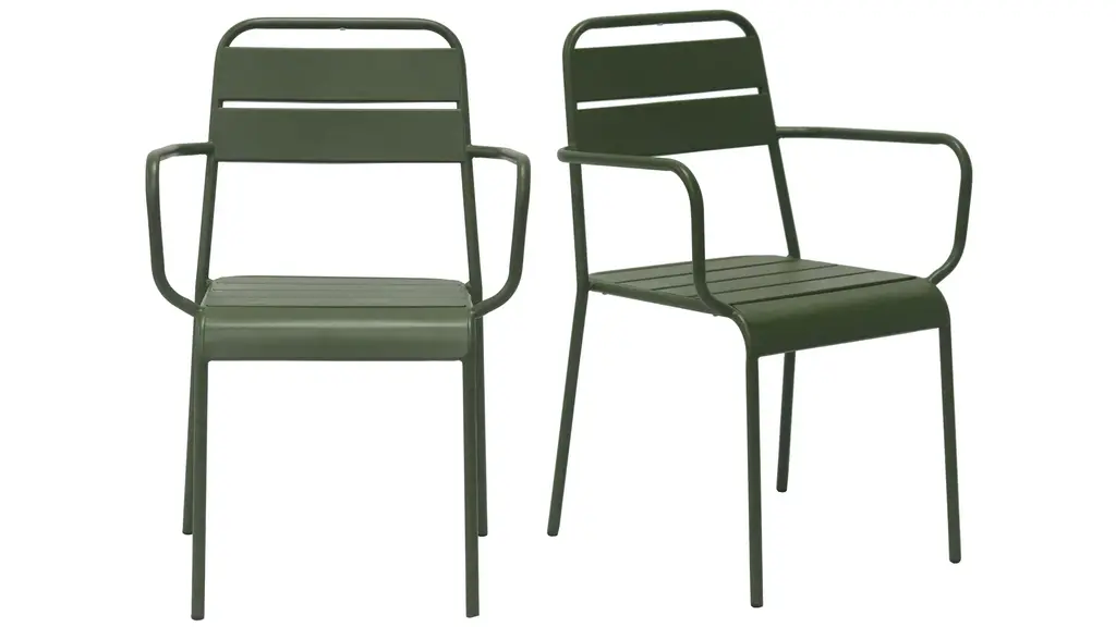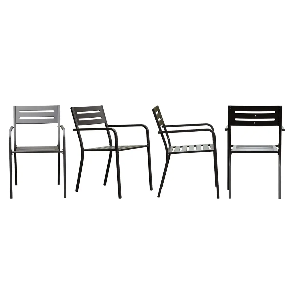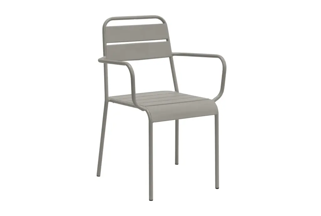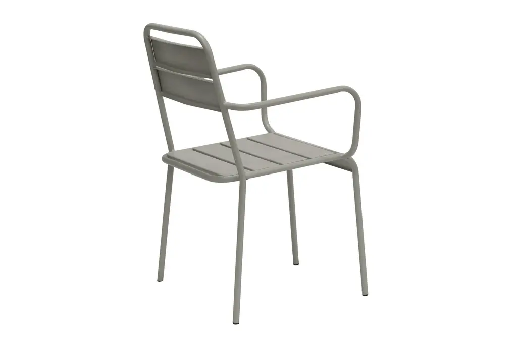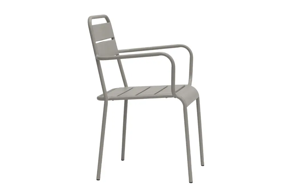 Outdoor Modern Light Grey Metal Dining Curved Armchairs Set Of 2 | Stackable