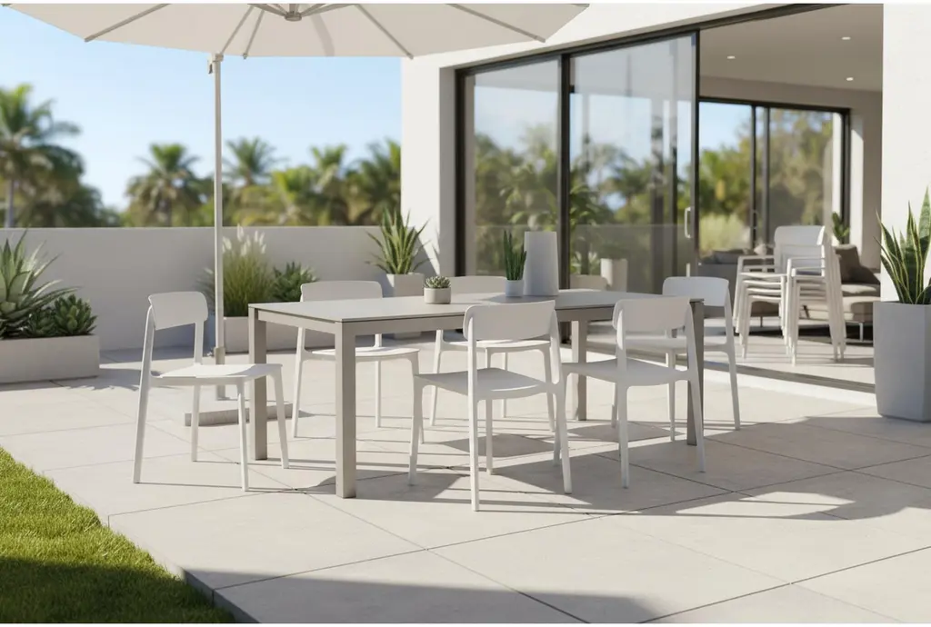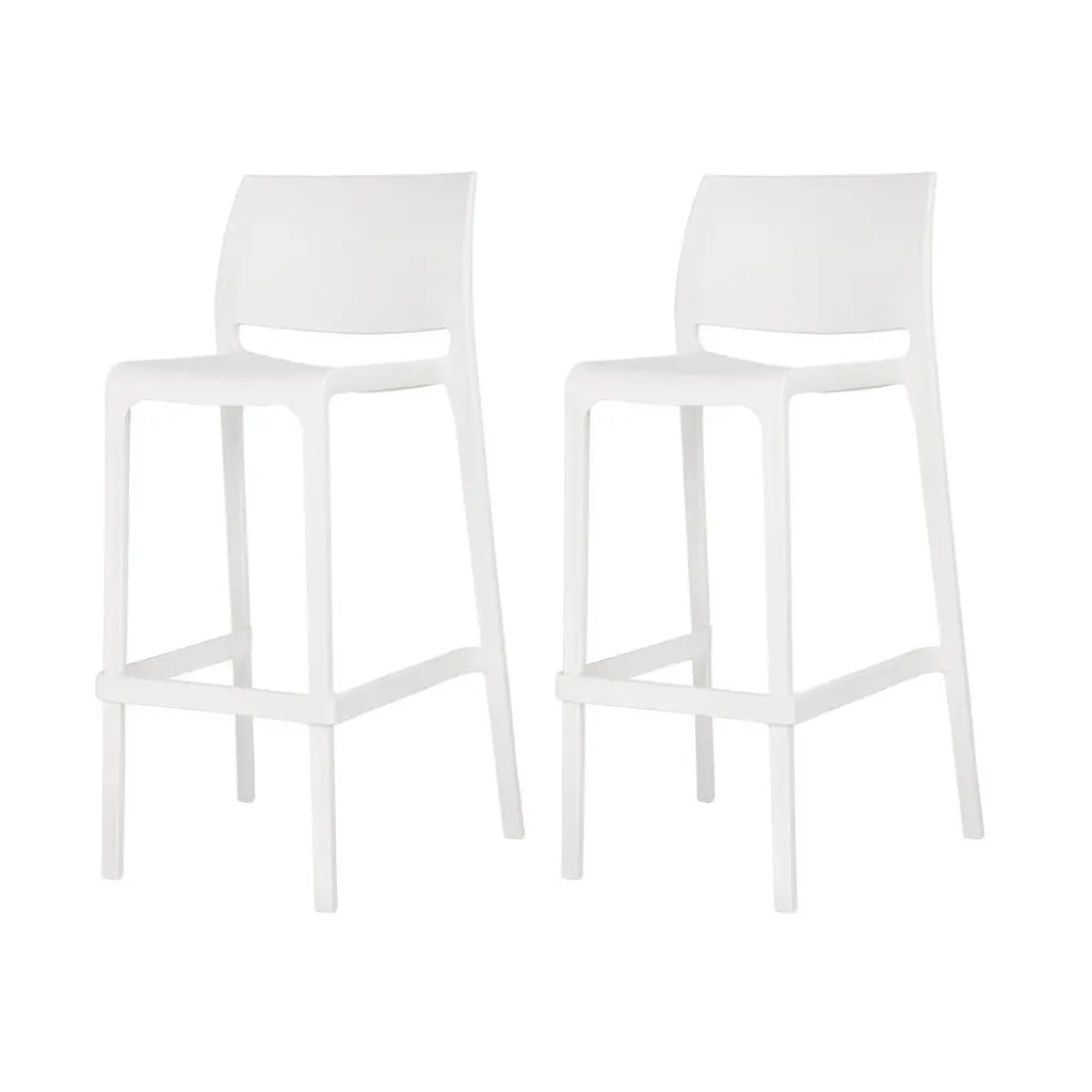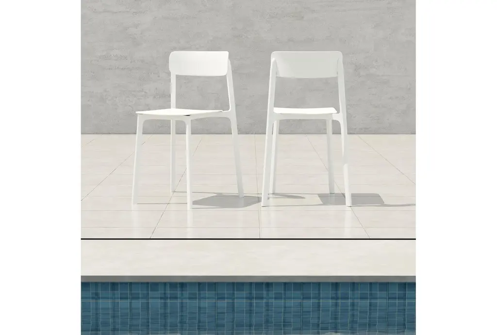 Outdoor Modern White Stackable Dining Chairs Set Of 2 | Armless