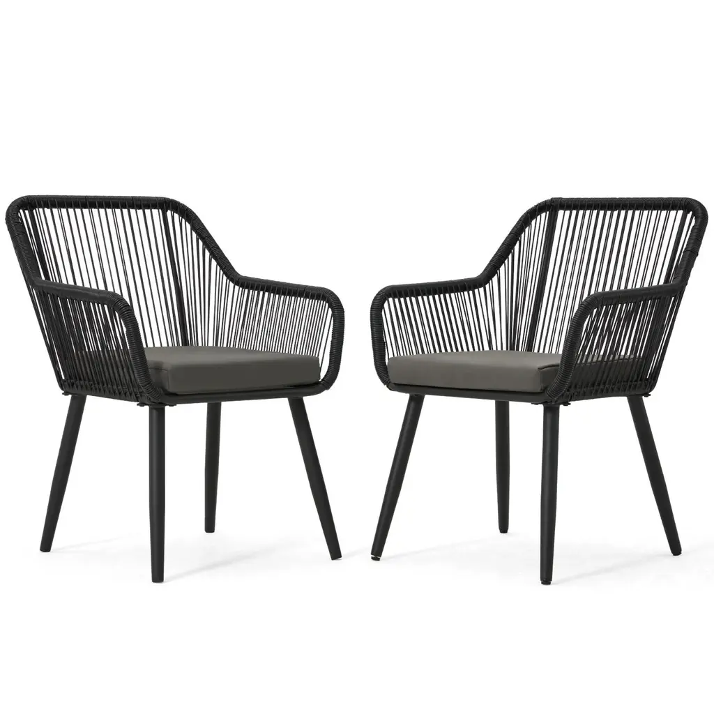 Outdoor Patio Dining Chairs Set Of 2, Wicker Rattan Balcony Chairs With Removable Cushions, Ergonomic Armrests And Backrest - Grey