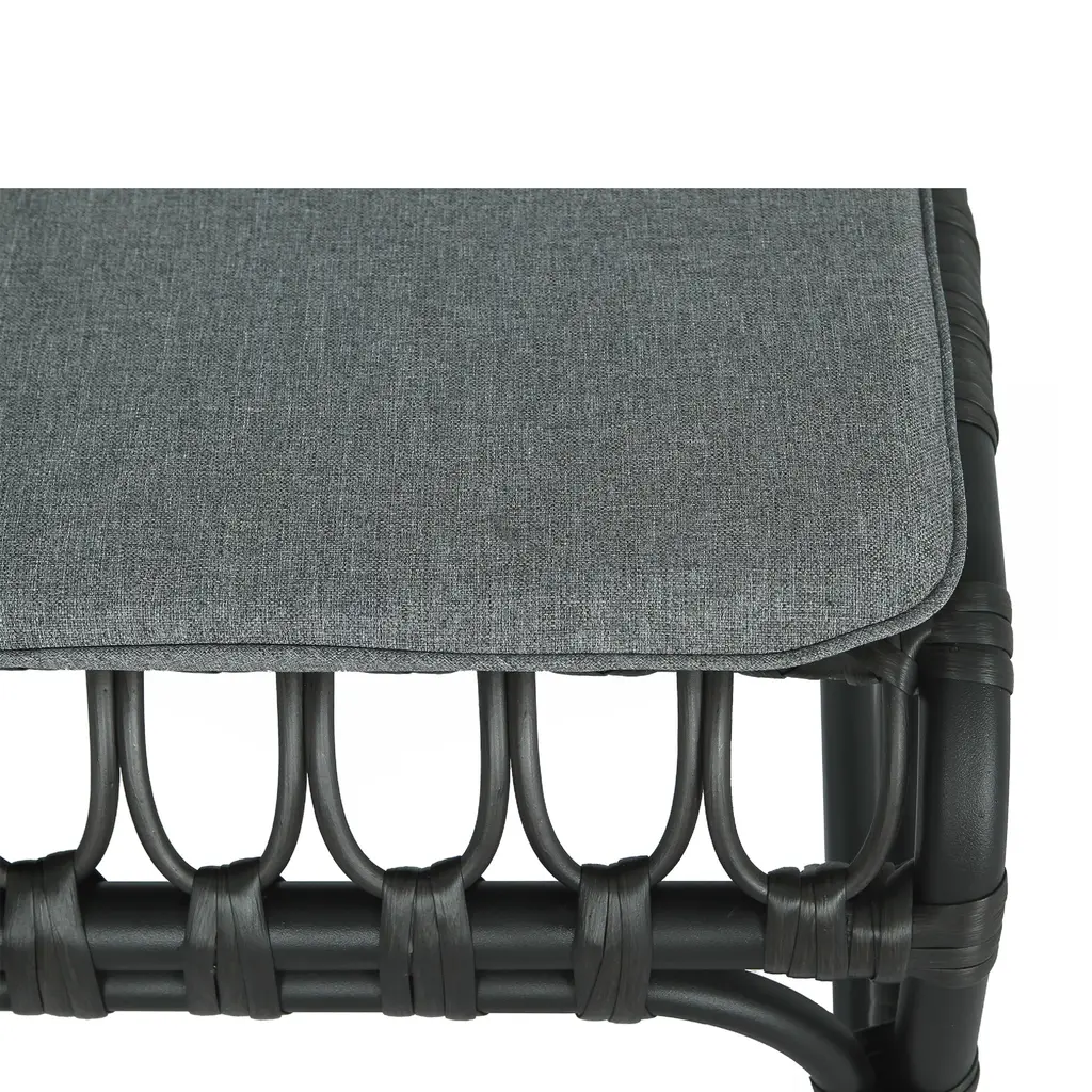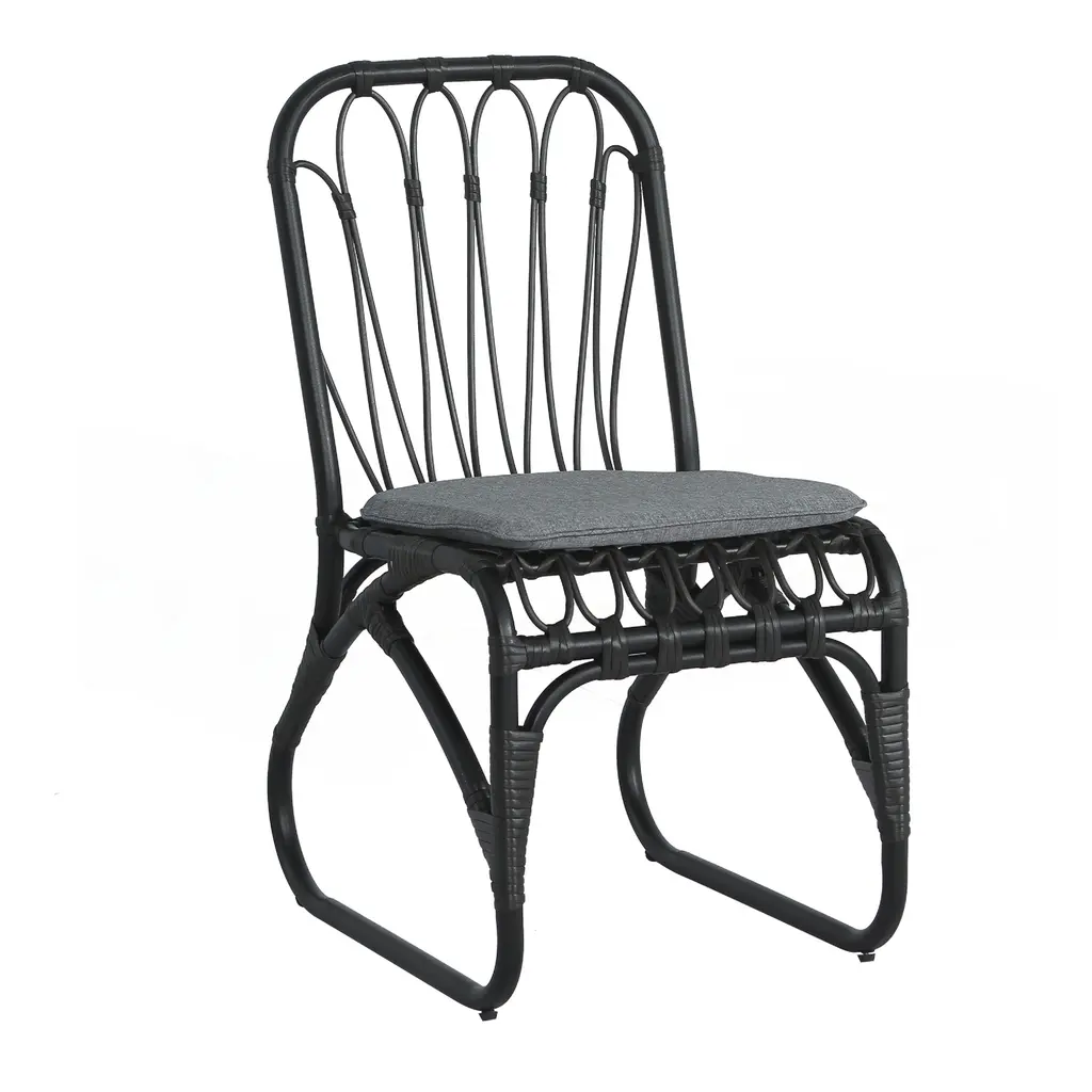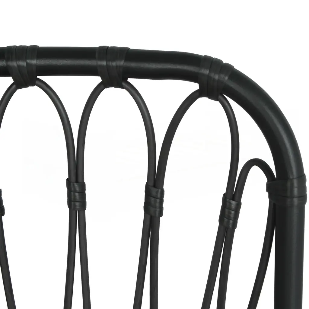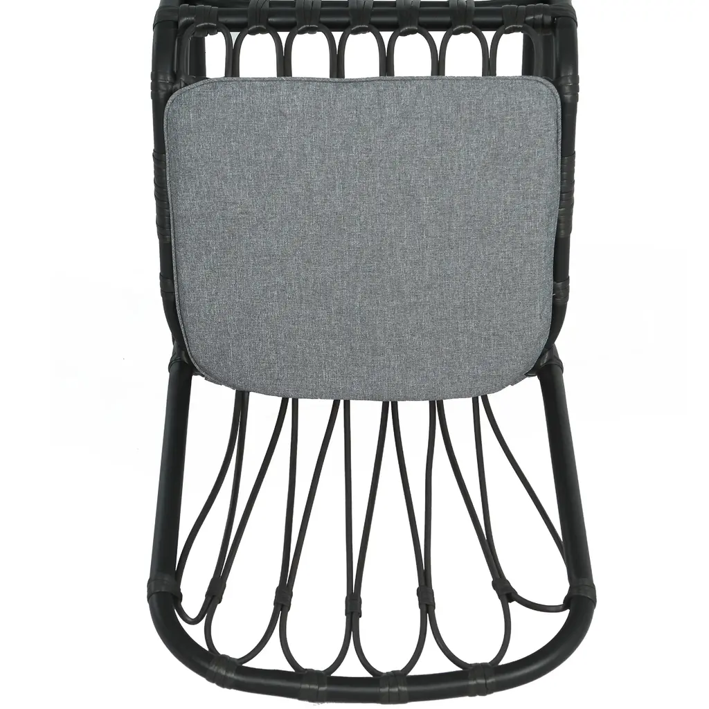 Premium Outdoor Rattan Chair - Elegant & DurableKey Features 1. Handcrafted Durability Reinforced iron frame with rust-resistant coating (400 lb capacity) Handwoven PE rattan withstands UV rays and -4°F to 122°F temperatures Adjustable foot pads (±0.8") for stability on uneven surfaces 2. Comfort & Convenience Component Specification Cushions 1.2" thick with zippered, machine-washable polyester covers Design Petal-shaped backrest for ergonomic support Maintenance Wipe-down frame + removable cushions for easy cleaning 3. Ready-to-Use Design Fully assembled - no tools required Dual-color option (black frame + grey/white rattan) Ultralight 10.47 lbs - easy to reposition Specifications Dimensions: 17.75"W × 21.75"D × 34.50"H Seat Height: 17.5" (standard dining chair height) Best For: Compact balconies, bistro sets, poolside Style Tip: Pair with marble-top side tables for modern contrast. (Note: PE rattan develops a subtle sheen with use) Care Instructions Monthly dust rattan with soft brush Store cushions indoors during heavy rain Avoid petroleum-based cleaners Set Includes 2 chairs + 2 cushions User manual