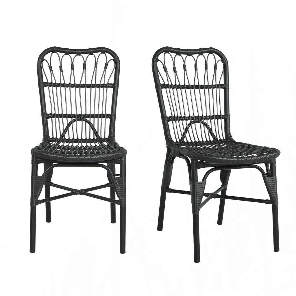Outdoor Pe Wicker Patio Dining Chairs Set Of 2 - Black