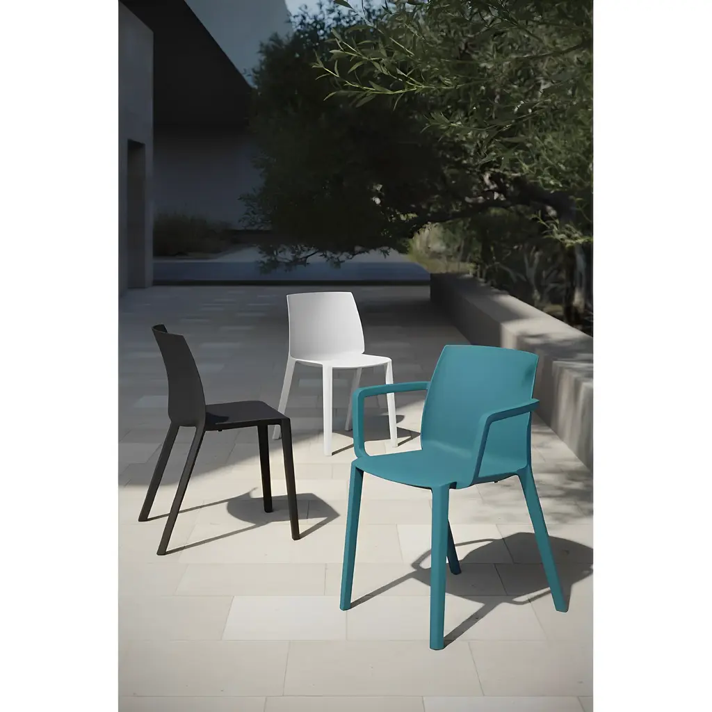 Upgrade your outdoor dining experience with the Myyour Ada chair. Made with durable polypropylene and advanced injection molding technology, this stackable chair is designed for both comfort and convenience. With interchangeable non-slip feet and 5 color options, it's the perfect addition to any luxury setting. Available with or without armrests.