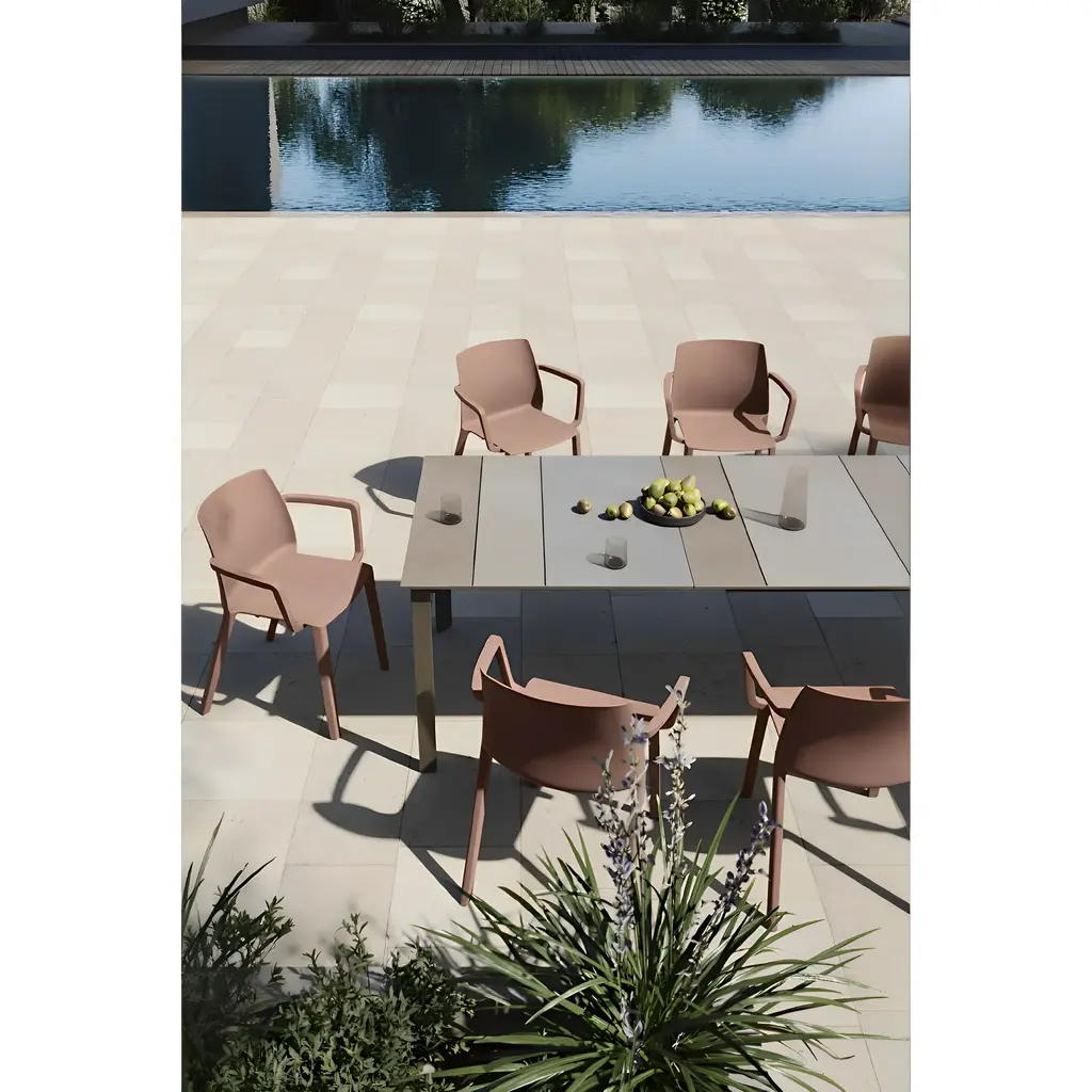 Upgrade your outdoor dining experience with the Myyour Ada chair. Made with durable polypropylene and advanced injection molding technology, this stackable chair is designed for both comfort and convenience. With interchangeable non-slip feet and 5 color options, it's the perfect addition to any luxury setting. Available with or without armrests.