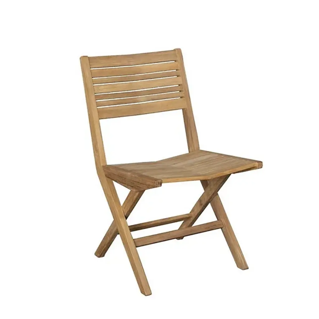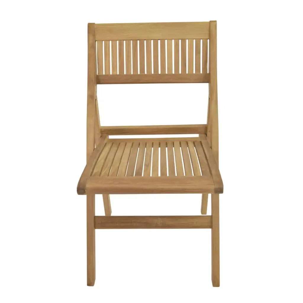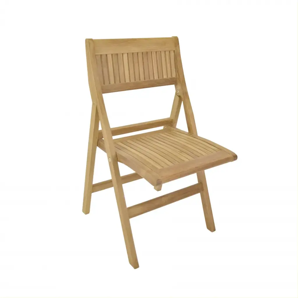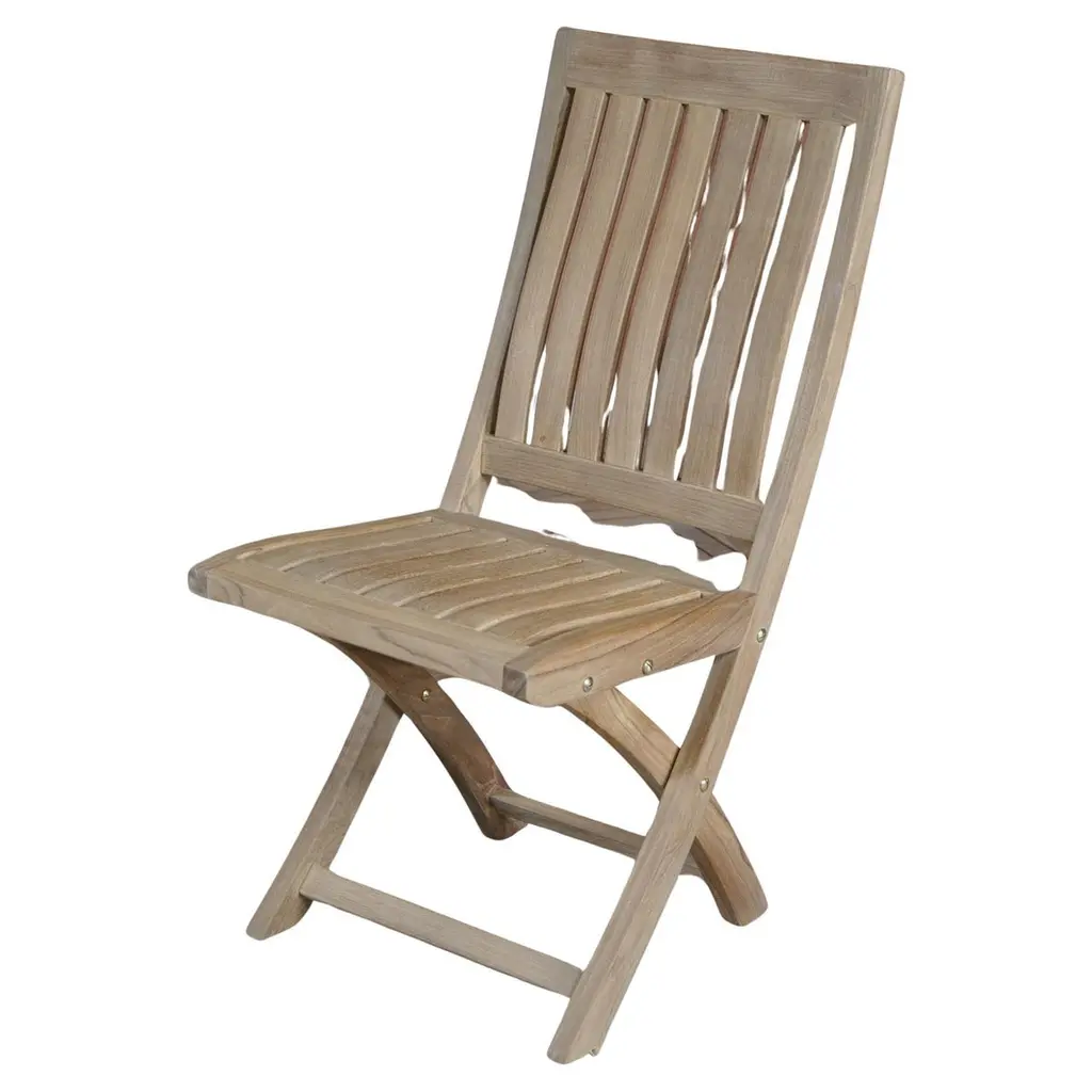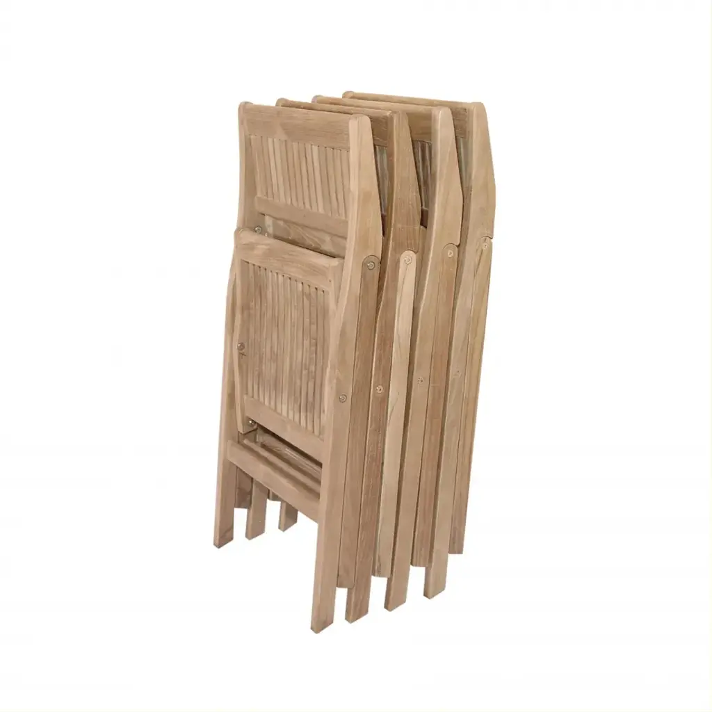 The Windsor folding chair is a sturdy, versatile, and compact side chair making it the perfect complement to our bistro tables. The chair also folds easily for moving and storing so you can accommodate guests when you need and hide the set when you don’t. Made from the finest solid teak, which is strong and durable, yet light enough to allow for easy storage. This is a beautiful and functional piece of furniture for your patio or terrace. A perfect piece for restaurant use or Café, the folding chair is without finish, in its natural teak form and color.