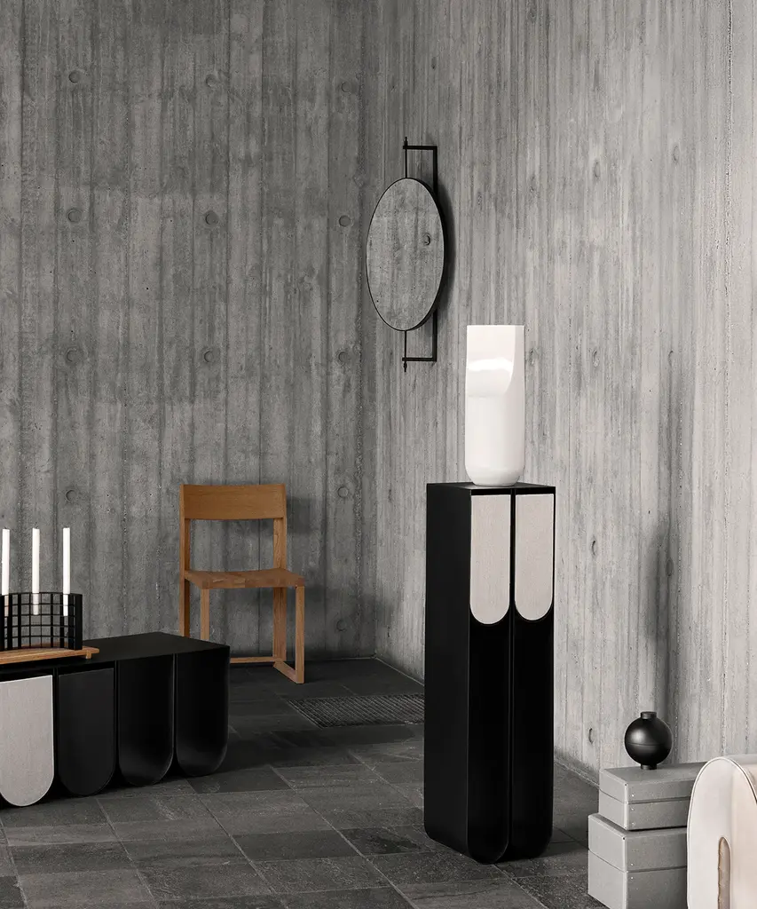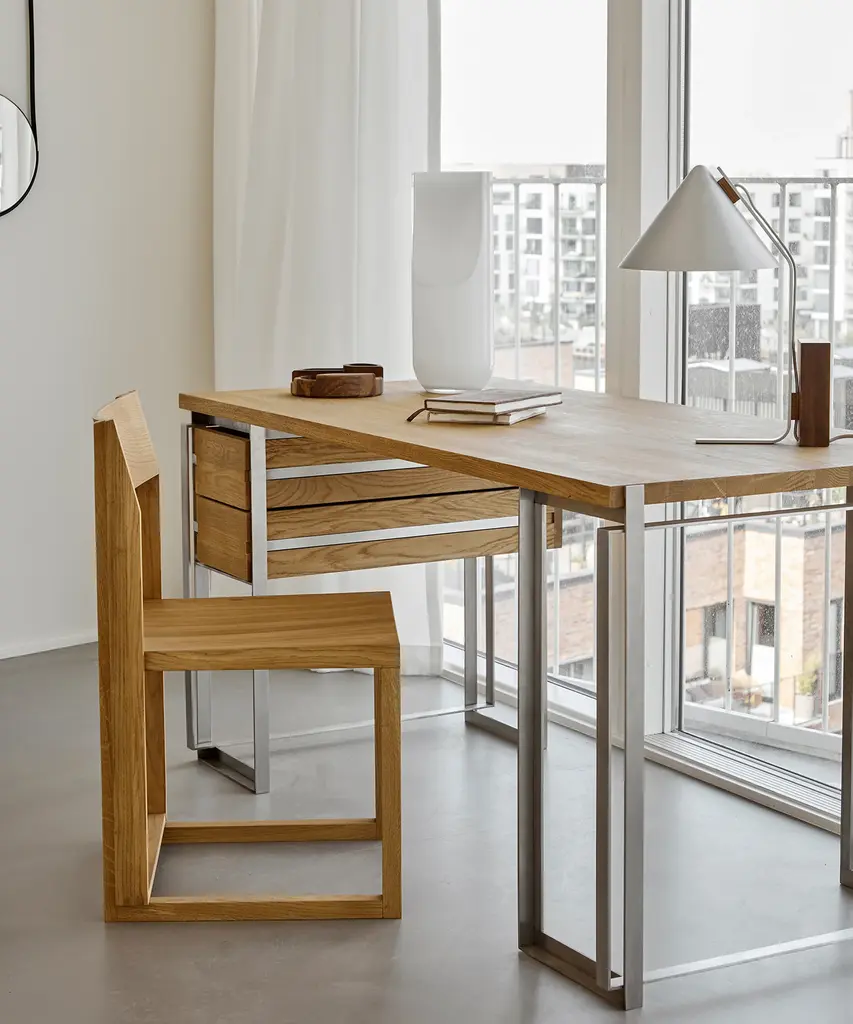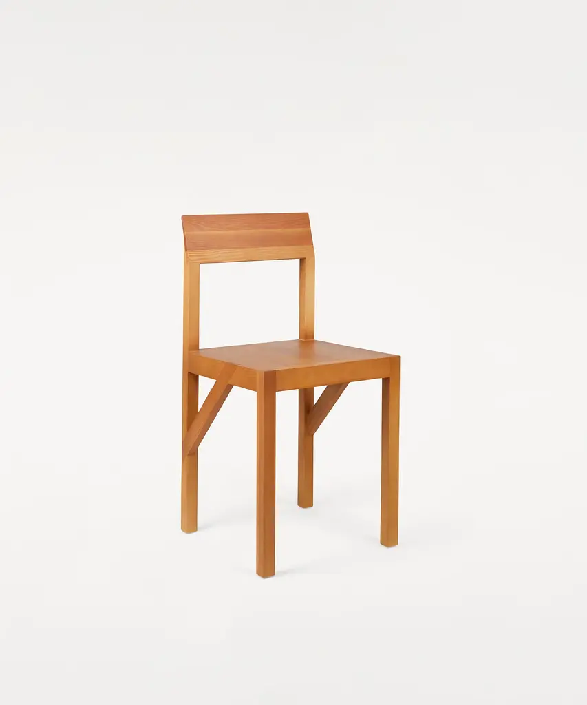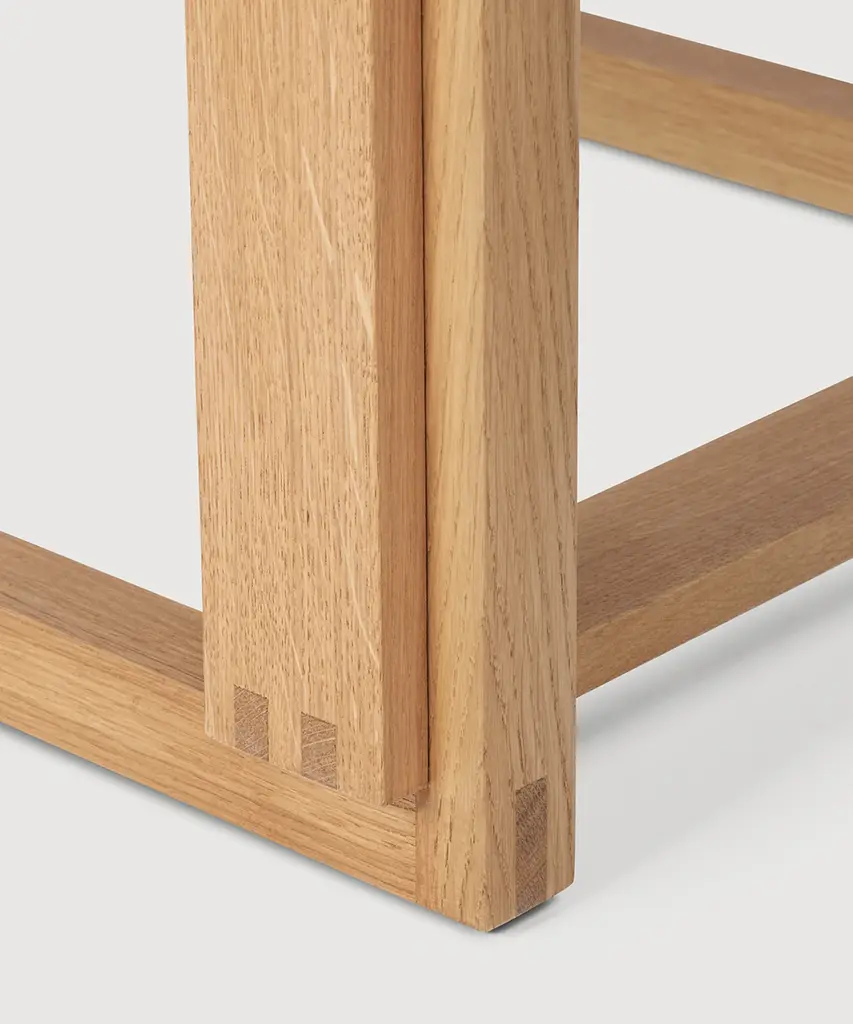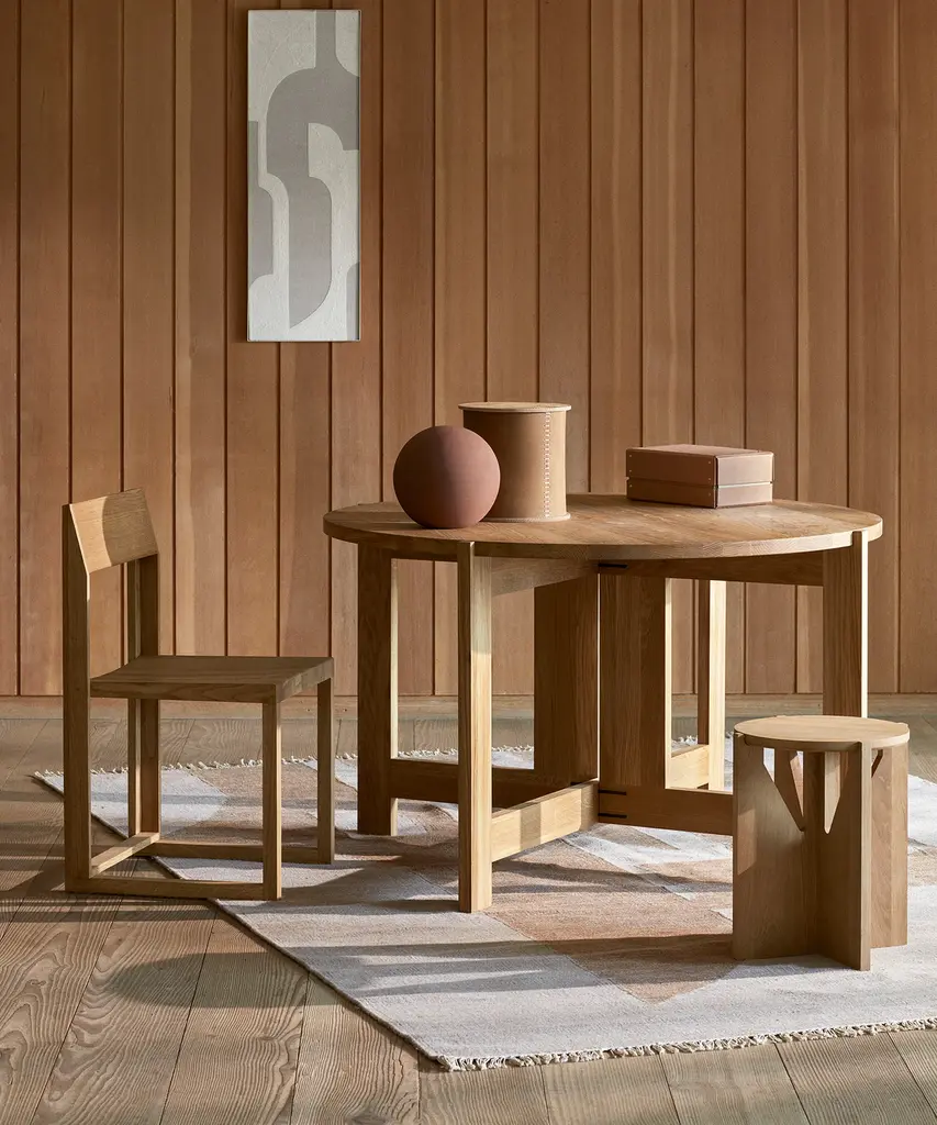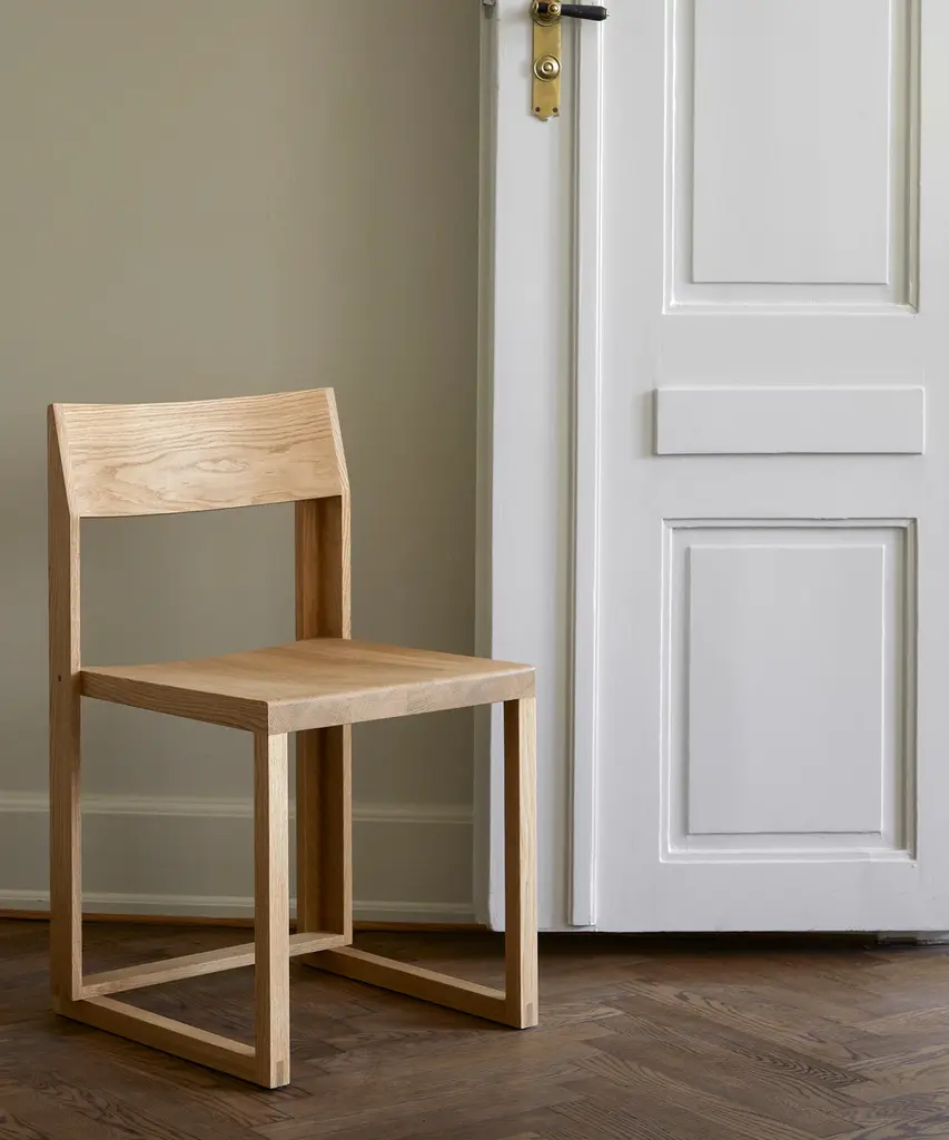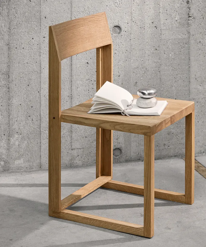 With its airy frame, the Outline chair has a sculptural and minimal expression that creates a distinctive atmosphere. The clean and simple lines form the chair's frame, making it a modern sculptural chair that complements the workspace, dining area, and contemporary spaces. The Outline Chair offers a comfortable seat or rest; placed in a hallway or corner, it becomes a functional, sculptural object. Crafted from lacquered FSC-certified oak with walnut tree details.Designed by Kristina Dam Studio in Copenhagen, Denmark.