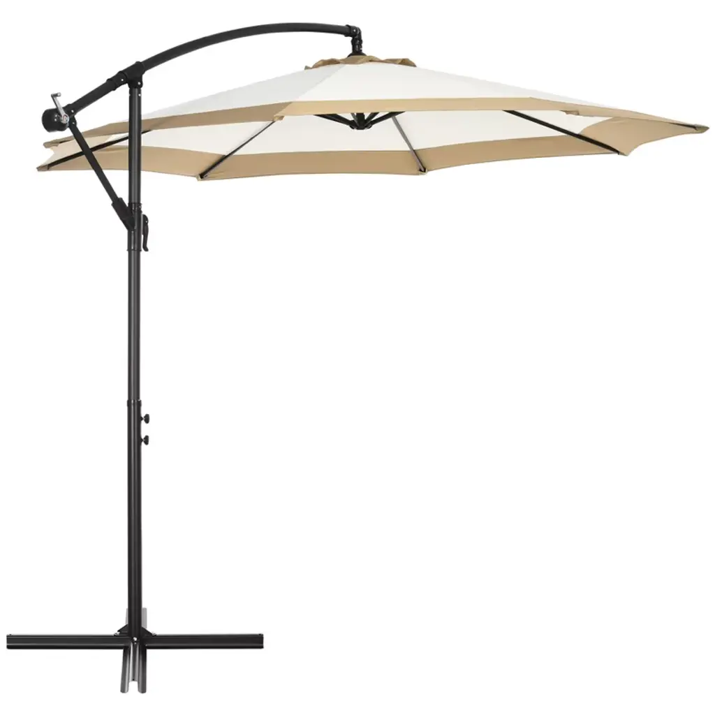 Outsunny 10' Patio Umbrella, Hanging Offset Outdoor Umbrella Cantilever Includes Crank And Cross Base, Fade Resistant For Yard, Garden, Pool, Tan