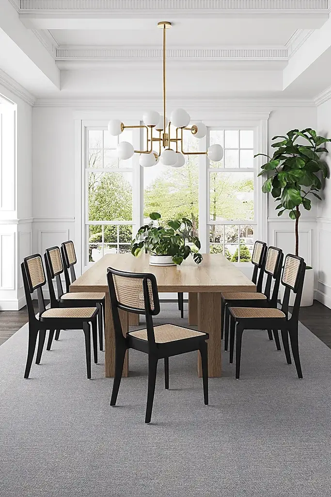 The elegantly styled Owlworth black side chair, set of 2 is a sophisticated and versatile piece you'll love having at the dinner table. This chair features a beautiful wood rattan accent along the seat and back and a sturdy American ash wood frame. The unique design and polished look make an eye-catching piece, sure to be a dining room favorite.