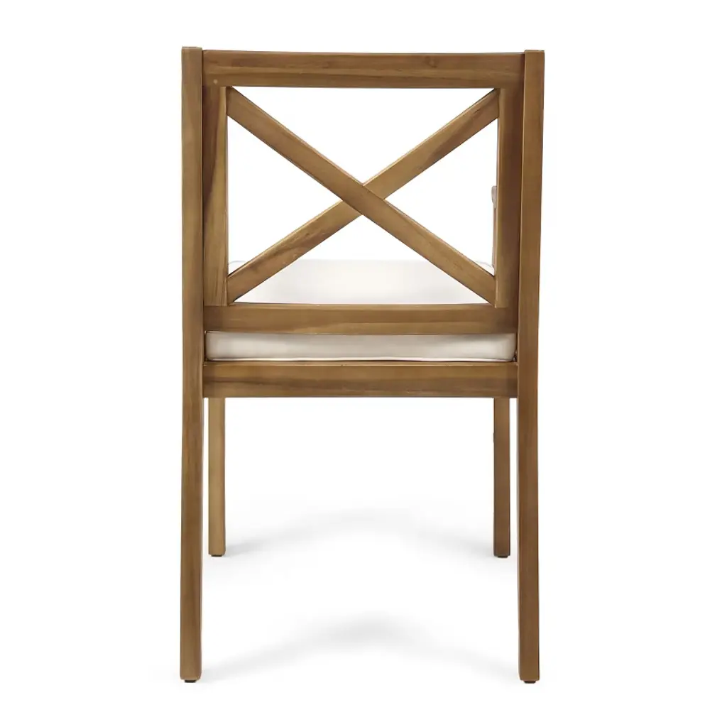 Paged Wood Outdoor Dining Chairs Set Of 2 Patio Chairs With Cushions All Weather Use For Poolside, Garden, Backyard, Cream+teak