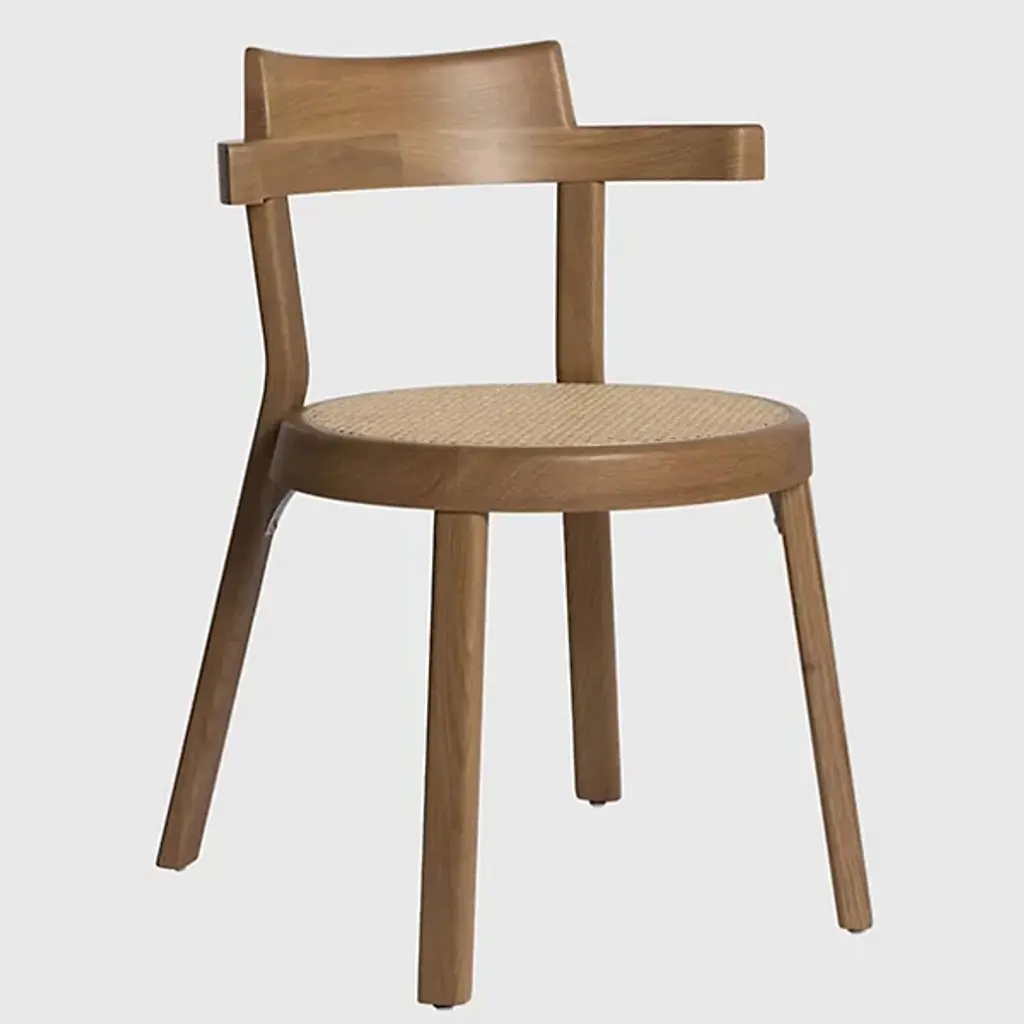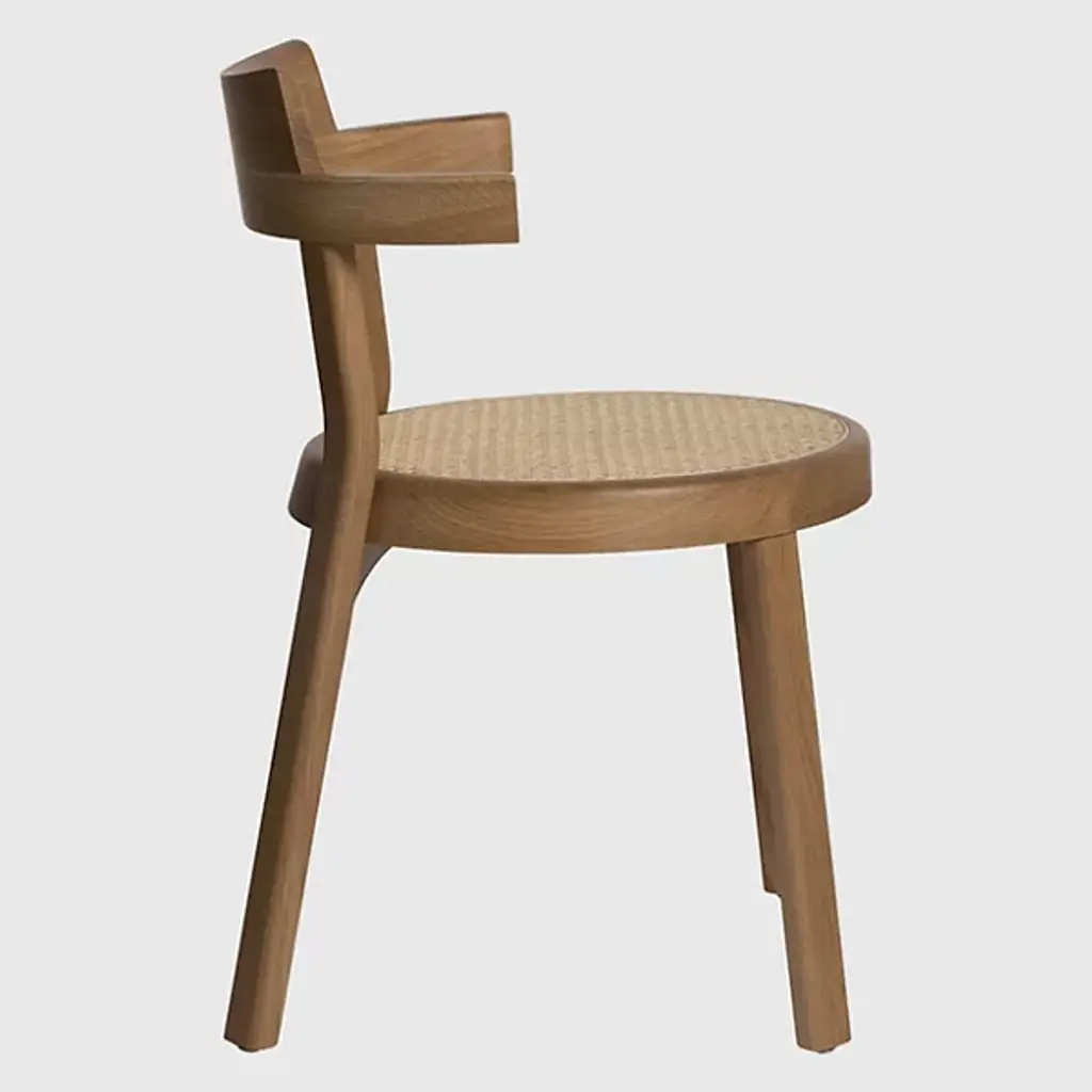 The Pagoda Chair Cane by Stellar Works pays homage to the classic café chairs from 19th century Vienna. With a focus on minimalism, these chairs are exceptionally lightweight and compact. Consisting of just six pieces, they exemplify efficient craftsmanship and allow for versatile material configurations. The circular seat design embodies the concept of "oneness" in Chinese culture, while the cantilevered arms and back subtly reference Pagoda gates. This design choice adds personality to the chairs and eliminates the need for armless versions, creating a harmonious blend of form and function.