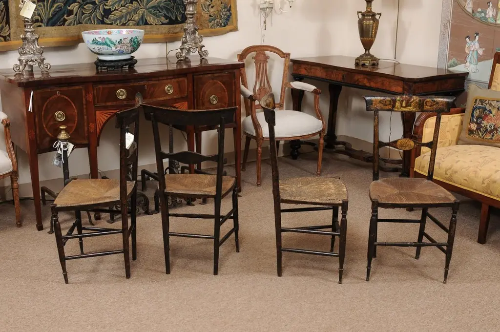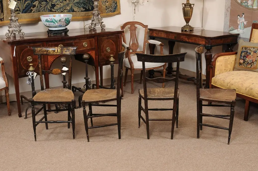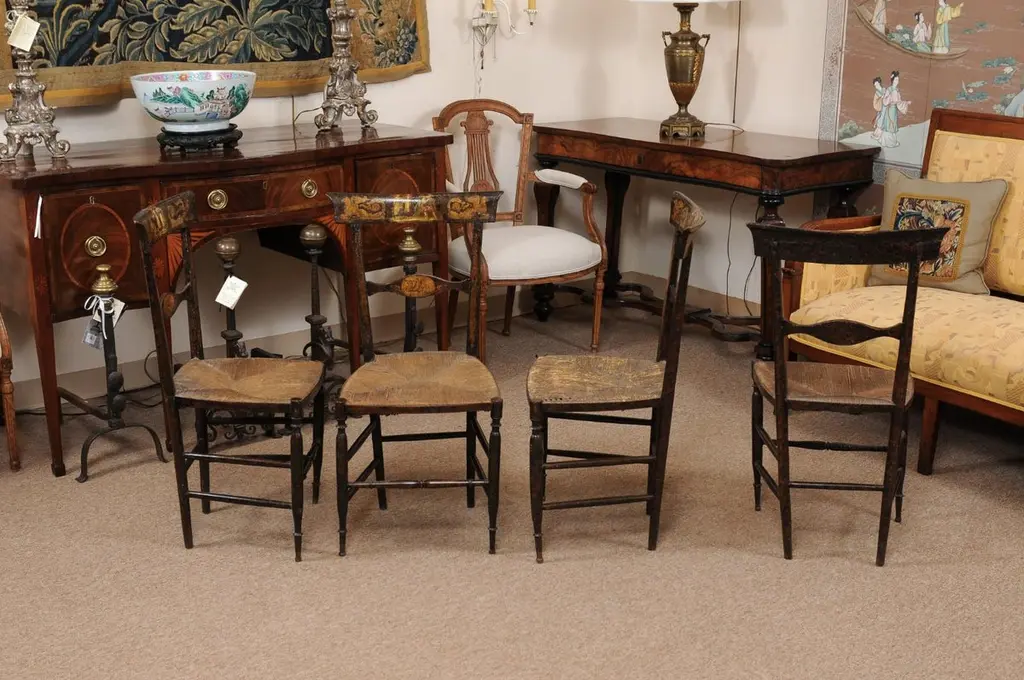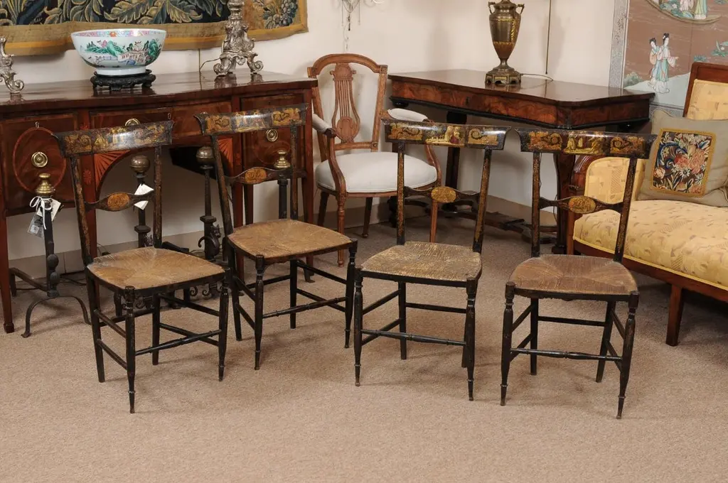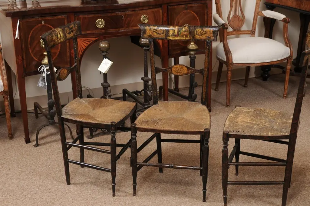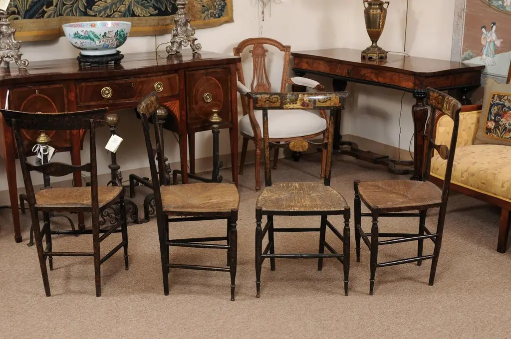 Pair Of Handpainted Side Chairs With Rush Seats, Italy, Circa 1820