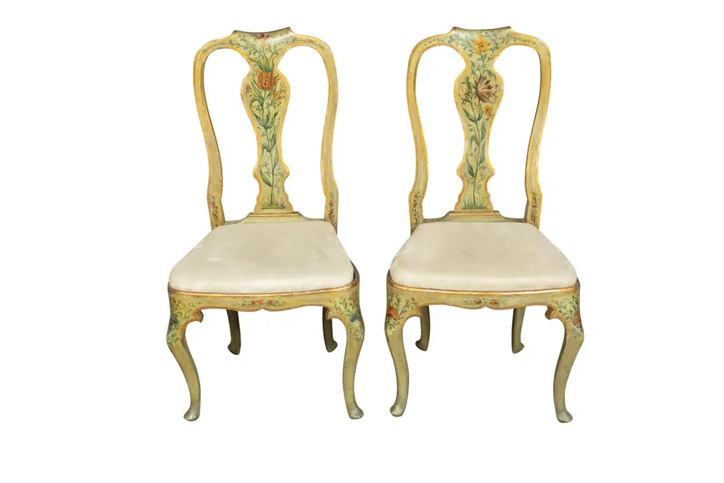 Pair Of Italian Rococo Painted Side Chairs