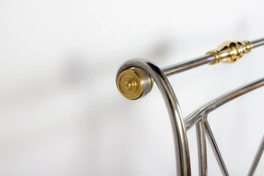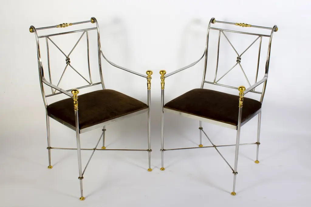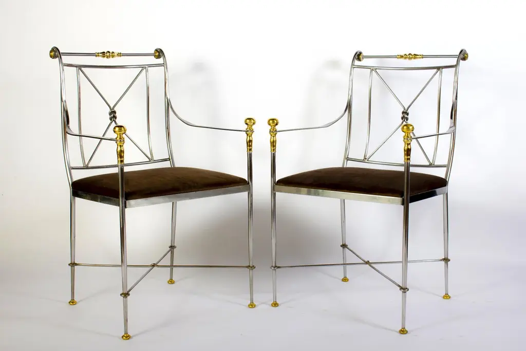 Pair Of Italian Steel And Brass Armchairs Signed Orlandi, 1970s