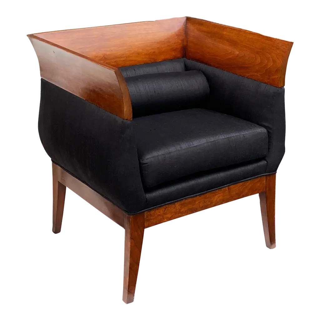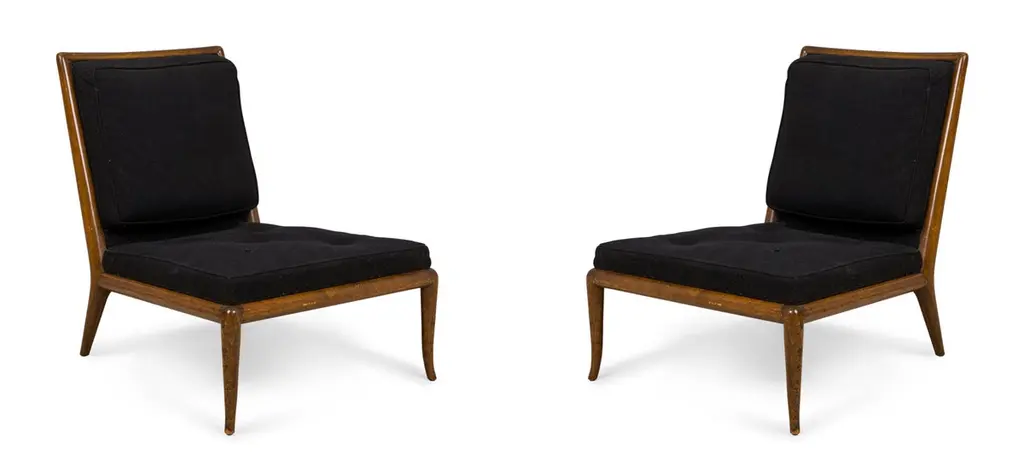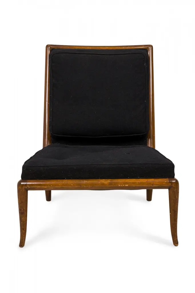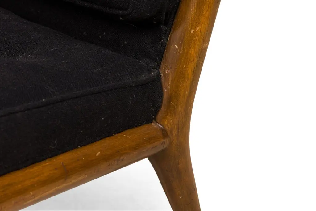 Pair Of T.h. Robsjohn-Gibbings / Widdicomb Black Fabric And Walnut Slipper