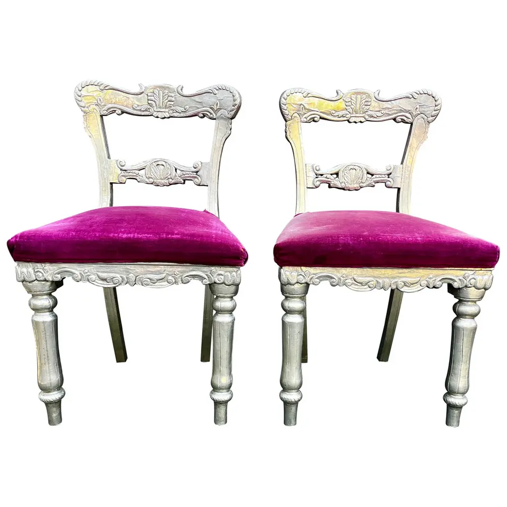Pair Of Venetian Lacquered Rococo Style Chairs With Fornasetti Upholstery