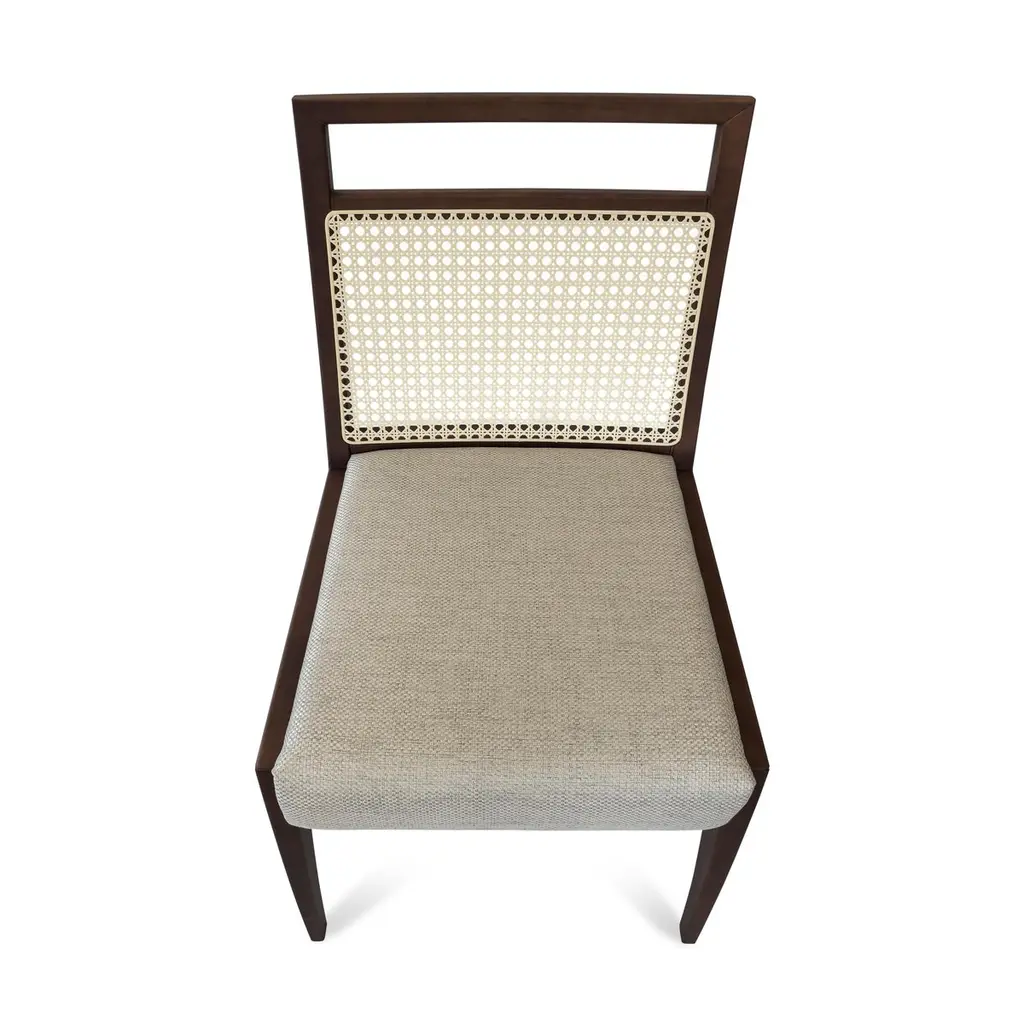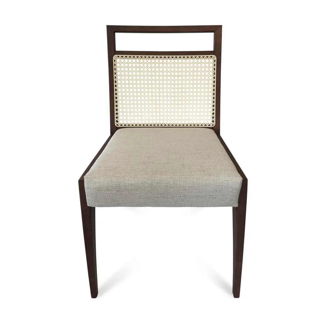 Pair Of Walnut Finish Dining Chairs With Cane Back, Oatmeal Fabric – Sotto Line