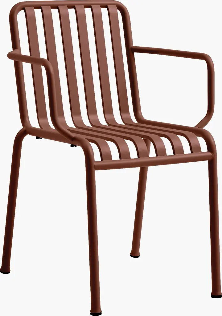 For the Danish design company HAY, brothers Ronan and Erwan Bouroullec created the Palissade Collection (2015). Designed in color and form to integrate effortlessly with its surroundings, this collection stands out for its combination of visual simplicity and core strength. Elegant without being fragile and strong without being bulky, the Palissade Outdoor Armchair is a sleek seat at the dining table. Made in China.