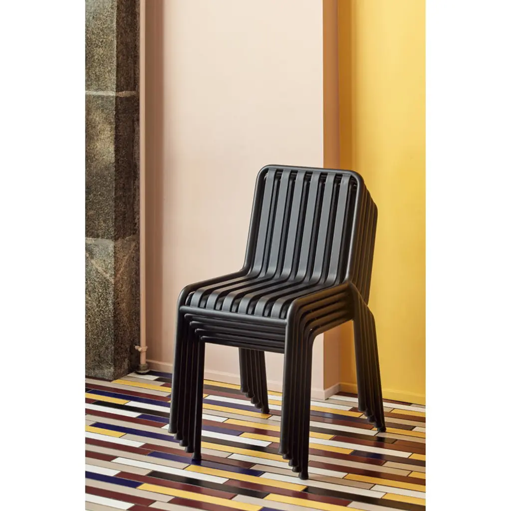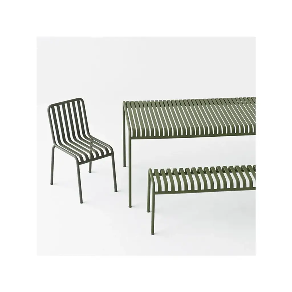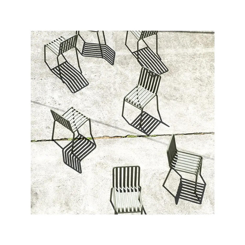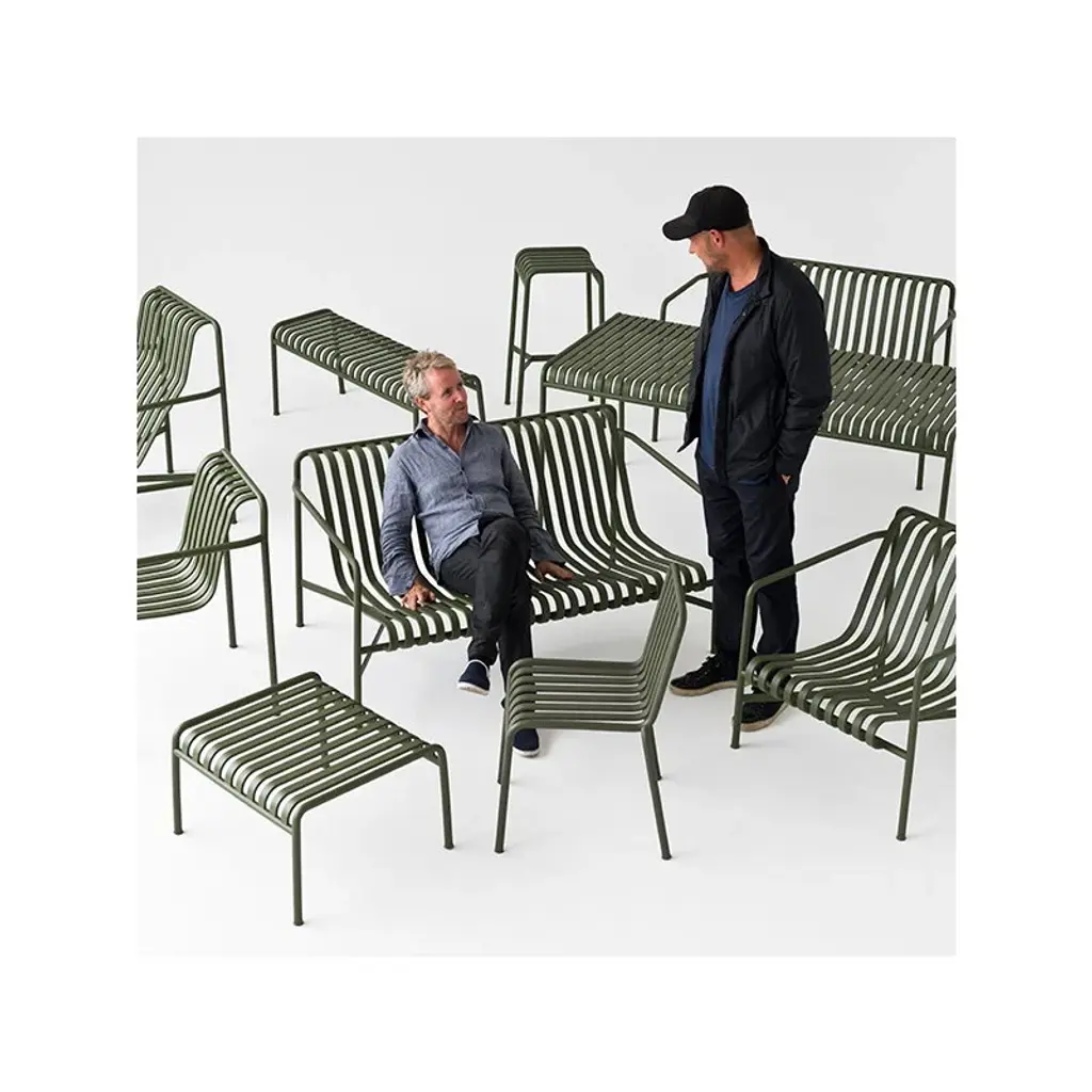 The sleek yet robust Palissade chair is a member of HAY’s versatile outdoor furniture collection. Palissade outdoor furniture features a strong, graphic design that consists of simple steel tubes and slats. Ronan and Erwan Bouroullec worked with the collection for two years and created a range of simple, balanced pieces that are well suited for terraces, balconies, gardens, cafés and public spaces. The Palissade chairs, tables and benches are sturdy but elegant, and perfect for outdoor use, since wind and water will pass through the galvanized steel frame. The Palissade furniture was designed to age well and its muted color palette adds to the timeless and versatile appearance.
