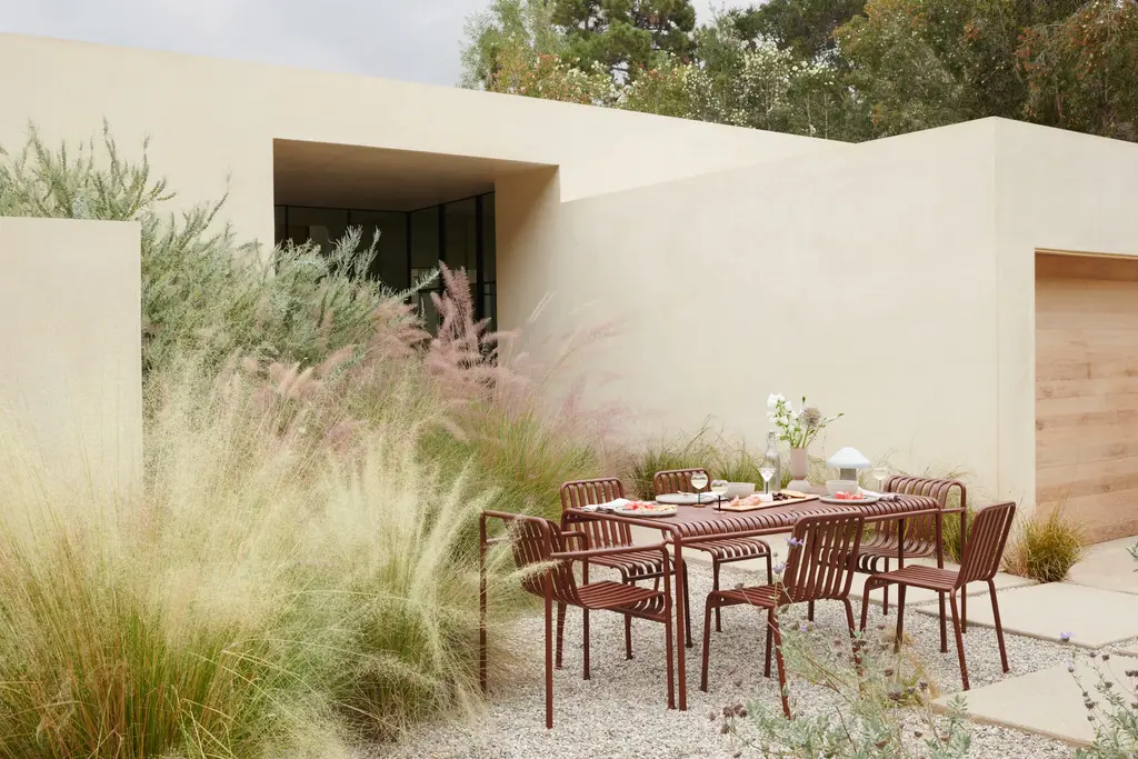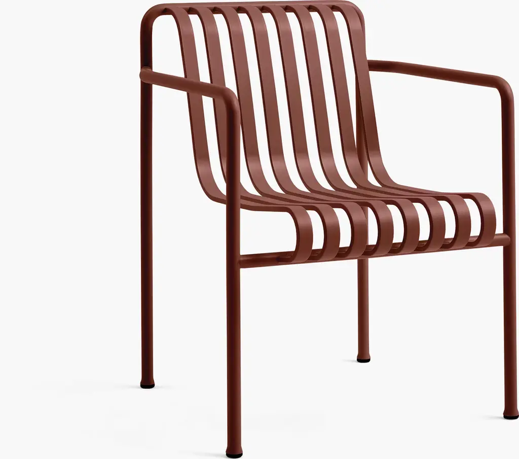 For the Danish design company HAY, brothers Ronan and Erwan Bouroullec created the Palissade Collection (2015). Designed in color and form to integrate effortlessly with its surroundings, this collection stands out for its combination of visual simplicity and core strength. Elegant without being fragile and strong without being bulky, the Palissade Outdoor Dining Armchair is a sleek seat at the dining table. Made in China.
