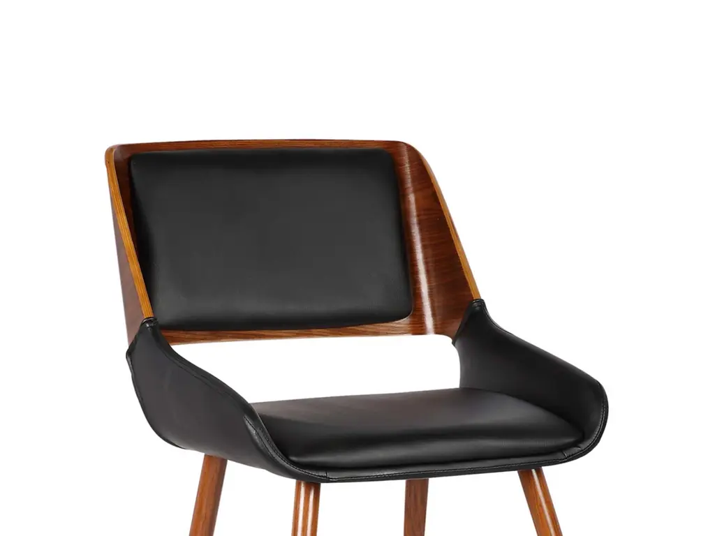 The Armen Living Panda mid-century dining chair is a great way to bring the comforts of yesteryear into your modern life. The sleek design of this contemporary marvel combines a softly curved hardwood walnut frame with an elegantly padded back. The seat is wide and accommodating as well, making this side chair a wonderful comfort piece for the living or dining room. The Panda’s sturdy metal legs are rounded off and tapered with a stylish walnut wood finish. The Panda is upholstered in your choice of exquisite fabric, available in gray and brown, or faux leather black.