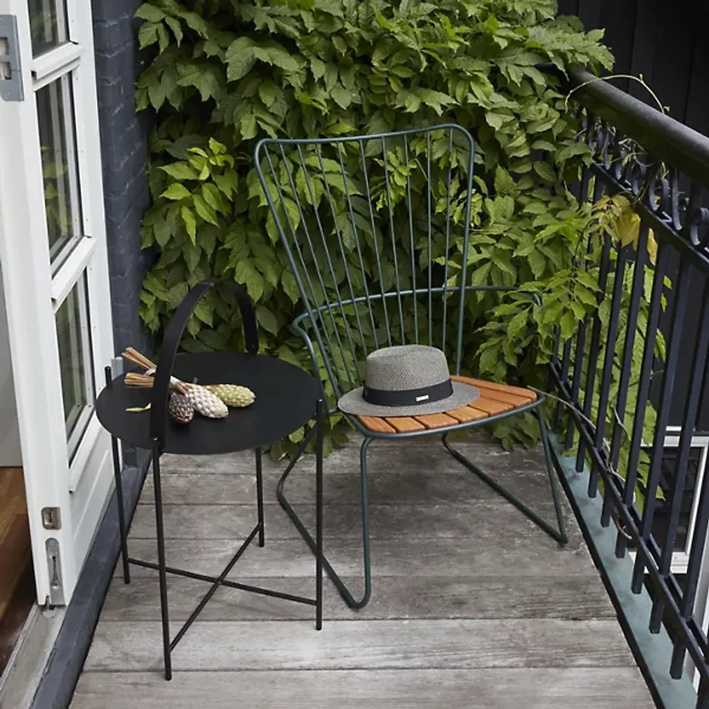 Enjoy your mealtimes with the Paon Outdoor Dining Chair Set of 2 by Houe. Steel has been elegantly crafted into a slender frame with a ribbed seatback. The chair’s strong legs form pyramid-like silhouettes while providing you with postural support. The arms of this chair contour gracefully, giving this furnishment a streamlined appearance. Place this chair in your contemporary kitchen so that you will be elevated to the right height when seated before your dinner table.