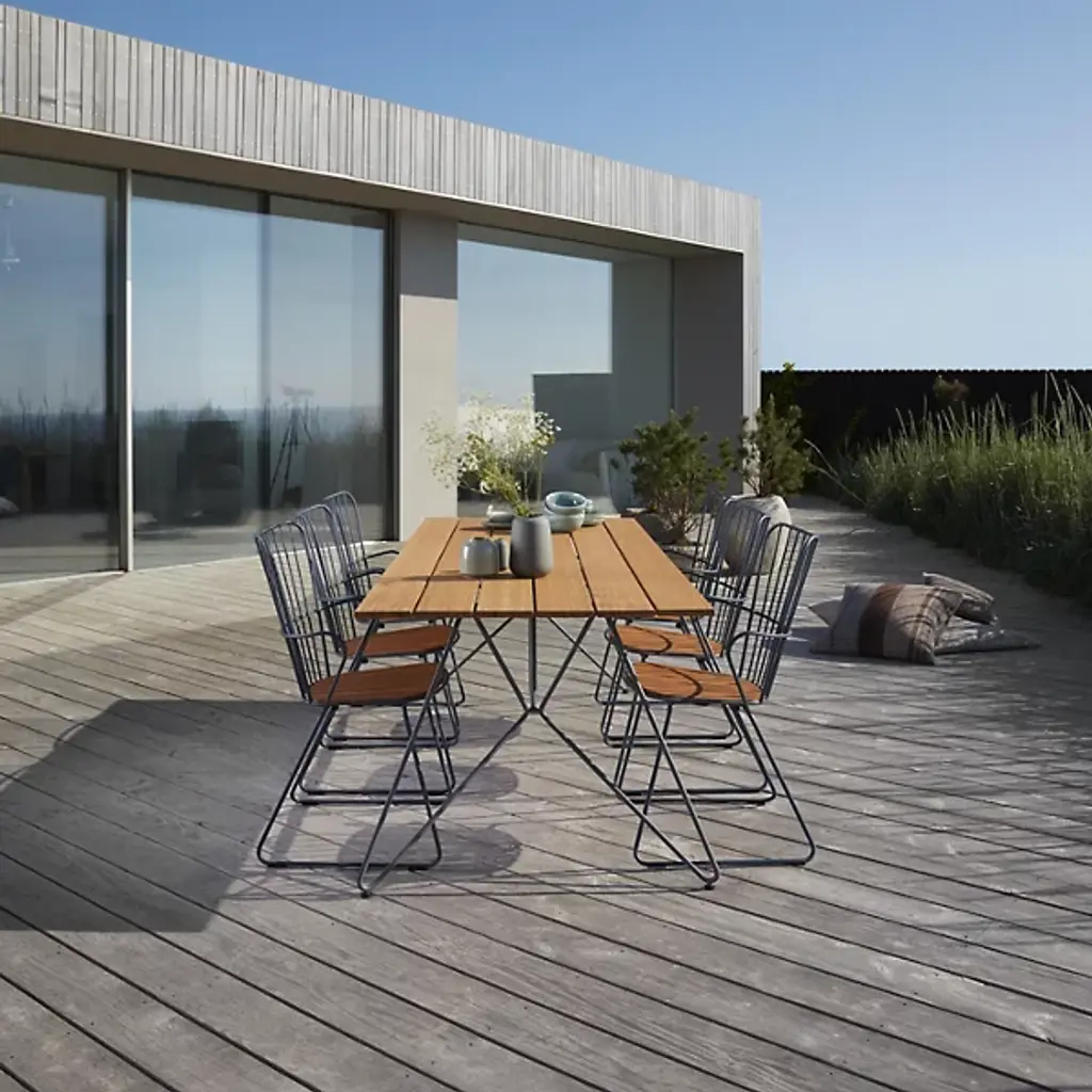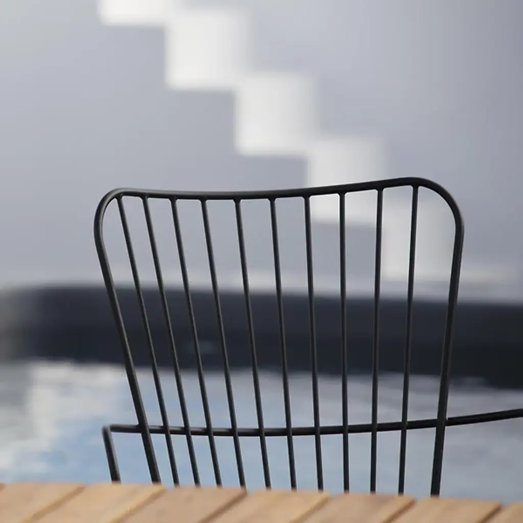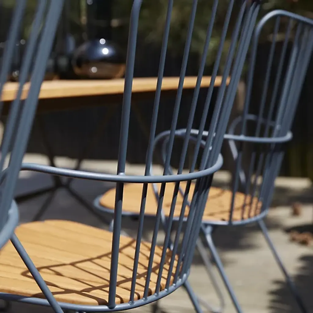 Enjoy your mealtimes with the Paon Outdoor Dining Chair Set of 2 by Houe. Steel has been elegantly crafted into a slender frame with a ribbed seatback. The chair’s strong legs form pyramid-like silhouettes while providing you with postural support. The arms of this chair contour gracefully, giving this furnishment a streamlined appearance. Place this chair in your contemporary kitchen so that you will be elevated to the right height when seated before your dinner table.