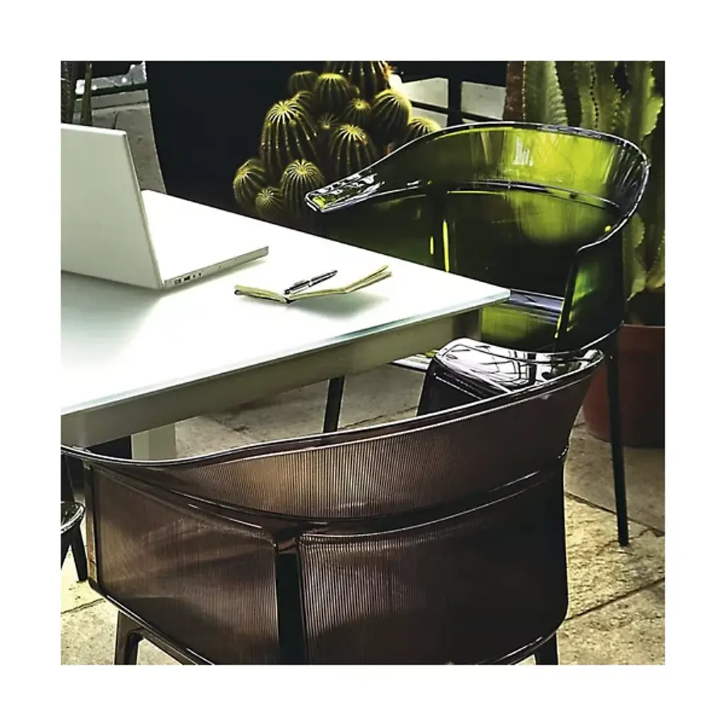 Designed by the Bouroullec Brothers for Kartell, the Papyrus Chair is both modern and traditional. The polycarbonate and translucent chair sports a slender profile while harking back to the traditional silhouette of a rush chair. Between the chair's contemporary construction and iconic design, the Papyrus Chair will easily offer your space a design lift.