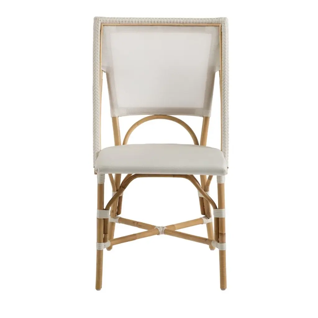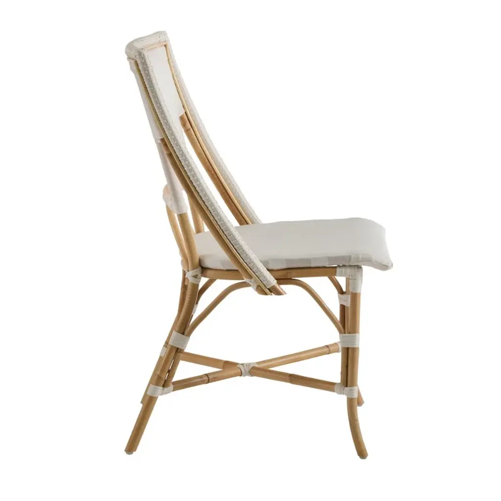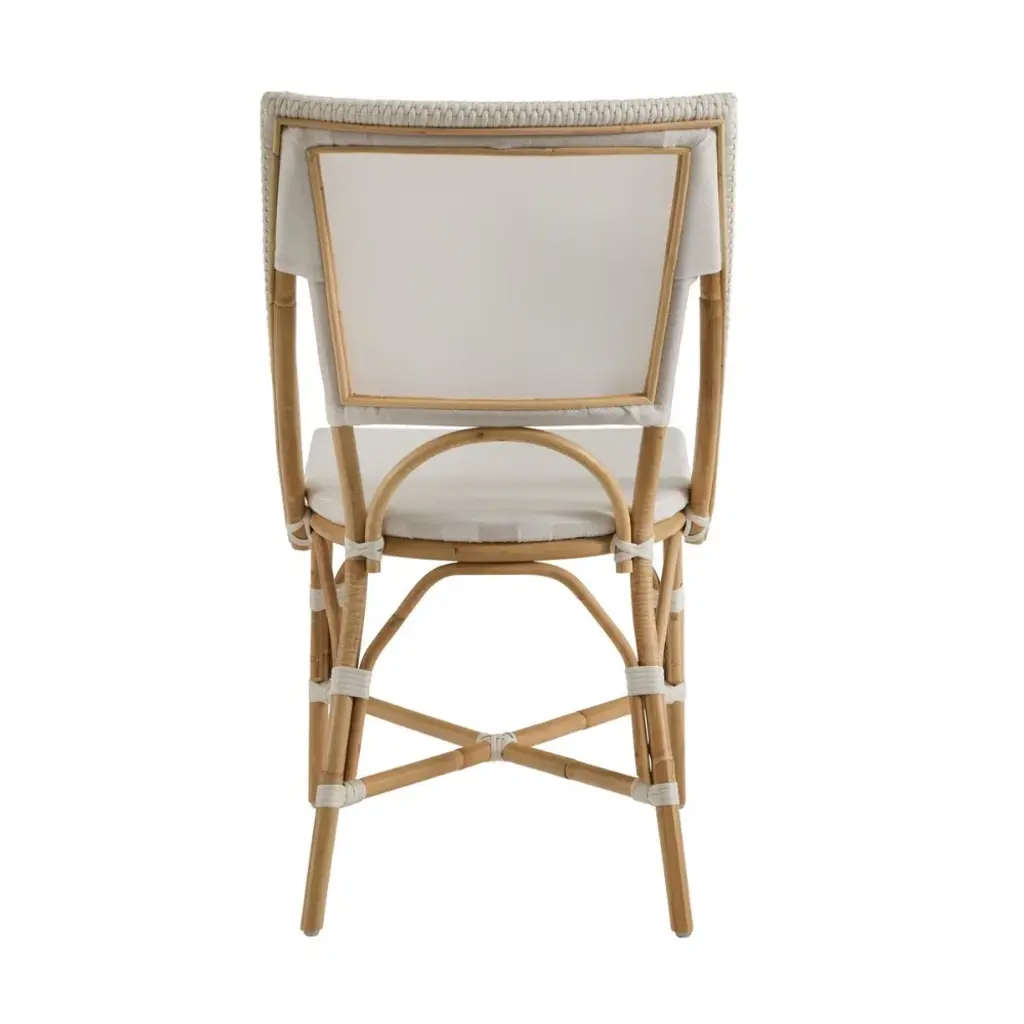 A natural rattan frame and brown rattan peel dining chair brings a neutral addition to a dining table. The lightly concave back and seat ensures comfort while enjoying meal time conversation.