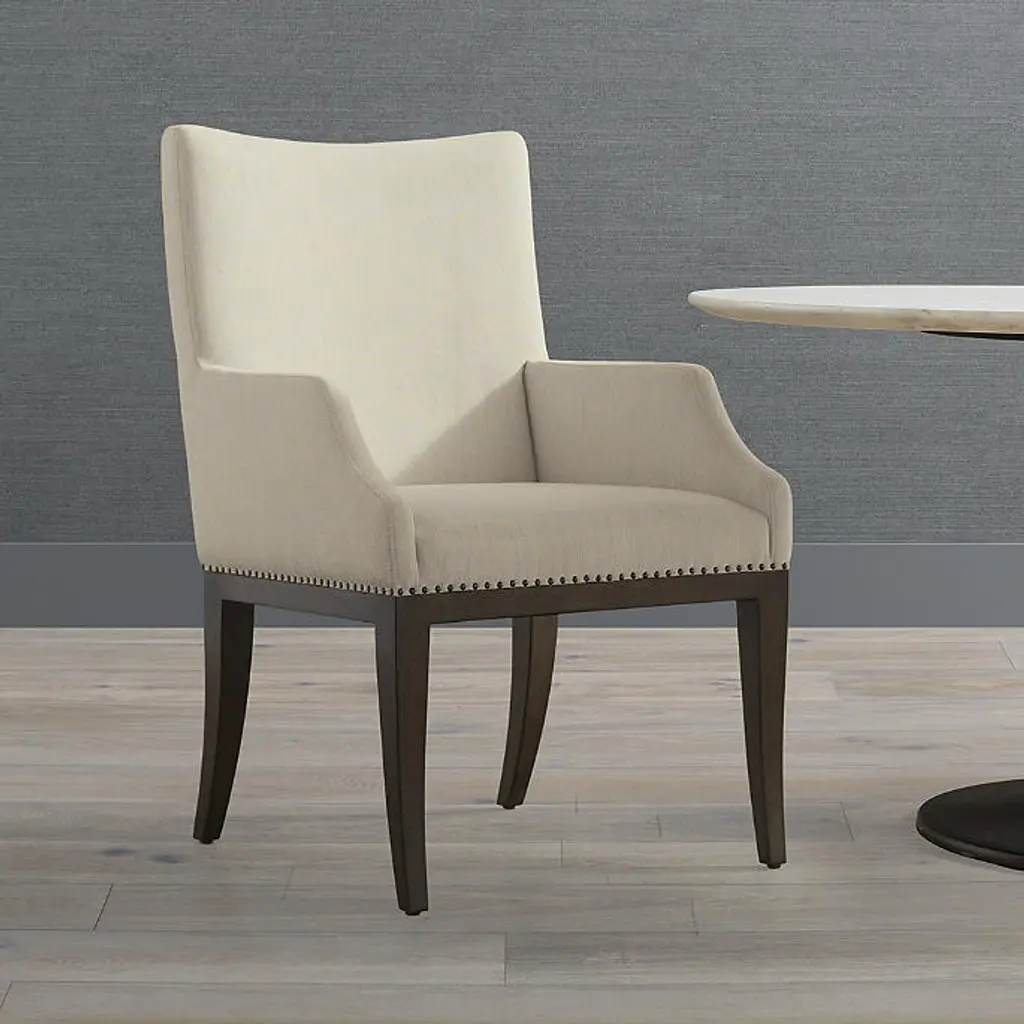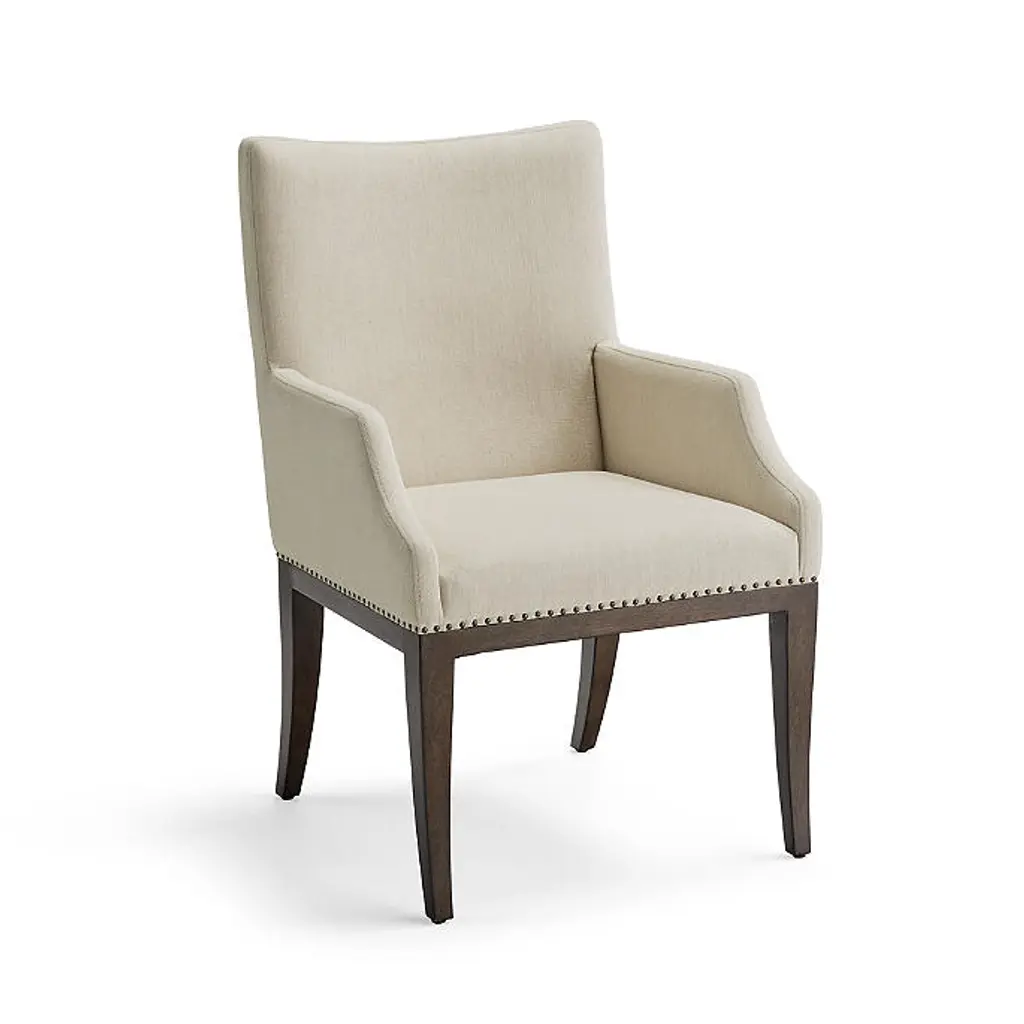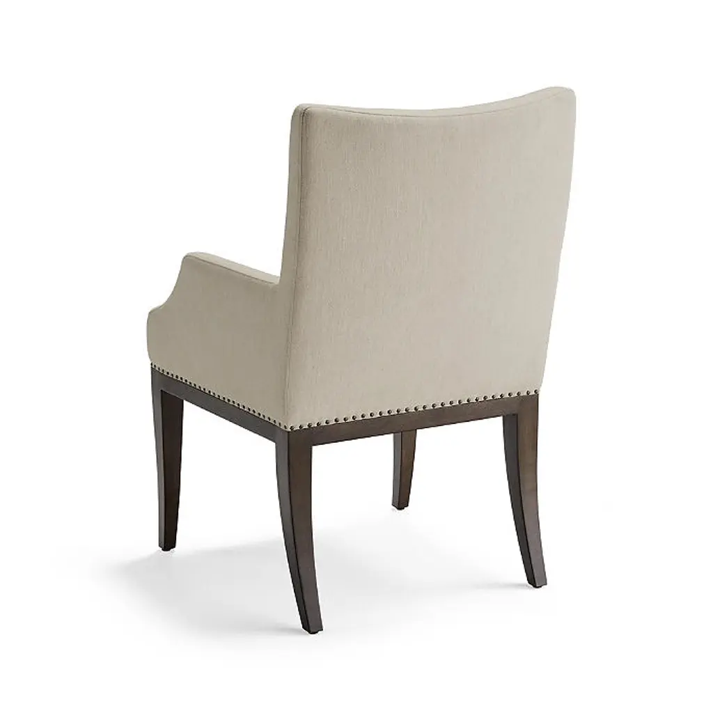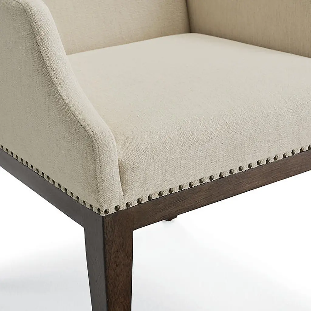 With a fully upholstered seat and back, high-density foam cushions and worry-free performance fabric, our Parker Dining Arm Chair feels as effortless as it looks. Gentle curves bring chic simplicity to the solid hardwood construction while a bronze nailhead trim brings a touch of sophistication. Kiln-dried solid hardwood frame with mortise-and-tenon joinery and corner blocking for lasting durability Cocoa finish High-density foam cushions surrounded with fiber fill and a polyester wrap for maximum comfort Crypton® Nomad Eggshell performance fabric resists stains and repels water and oils, ensuring easy cleaning Bronze nailhead trim detail at base of seat Hand-finished details Weight limit: 250 lbs. Coordinates with Parker Dining Side Chair Arrives assembled Imported A Frontgate exclusive. At Frontgate, our primary focus is quality. We guarantee that every product we sell will stand up to the supreme test – our customers' satisfaction. To learn more about our policies, visit our Shipping & Processing, Returns & Exchanges and Warranty & Price Guarantee pages. With a fully upholstered seat and back, high-density foam cushions and worry-free performance fabric, our Parker Dining Arm Chair feels as effortless as it looks. Gentle curves bring chic simplicity to the solid hardwood construction while a bronze nailhead trim brings a touch of sophistication. Kiln-dried solid hardwood frame with mortise-and-tenon joinery and corner blocking for lasting durability Cocoa finish High-density foam cushions surrounded with fiber fill and a polyester wrap for maximum comfort Crypton® Nomad Eggshell performance fabric resists stains and repels water and oils, ensuring easy cleaning Bronze nailhead trim detail at base of seat Hand-finished details Weight limit: 250 lbs. Coordinates with Parker Dining Side Chair Arrives assembled Imported A Frontgate exclusive. At Frontgate, our primary focus is quality. We guarantee that every product we sell will stand up to the supreme test – our customers' satisfaction. To learn more about our policies, visit our Shipping & Processing, Returns & Exchanges and Warranty & Price Guarantee pages.