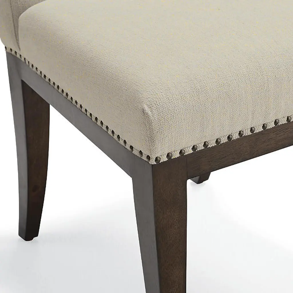 With a fully upholstered seat and back, high-density foam cushions and worry-free performance fabric, our Parker Dining Side Chair feels as effortless as it looks. A gently curved back brings chic simplicity to the solid hardwood construction while a bronze nailhead trim brings a touch of sophistication. Kiln-dried solid hardwood frame with mortise-and-tenon joinery and corner blocking for lasting durability Cocoa finish High-density foam cushions surrounded with fiber fill and a polyester wrap for maximum comfort Crypton® Nomad Eggshell performance fabric resists stains and repels water and oils, ensuring easy cleaning Bronze nailhead trim detail at base of seat Hand-finished details Weight limit: 250 lbs. Coordinates with Parker Dining Arm Chair Arrives assembled Imported A Frontgate exclusive. At Frontgate, our primary focus is quality. We guarantee that every product we sell will stand up to the supreme test – our customers' satisfaction. To learn more about our policies, visit our Shipping & Processing, Returns & Exchanges and Warranty & Price Guarantee pages. With a fully upholstered seat and back, high-density foam cushions and worry-free performance fabric, our Parker Dining Side Chair feels as effortless as it looks. A gently curved back brings chic simplicity to the solid hardwood construction while a bronze nailhead trim brings a touch of sophistication. Kiln-dried solid hardwood frame with mortise-and-tenon joinery and corner blocking for lasting durability Cocoa finish High-density foam cushions surrounded with fiber fill and a polyester wrap for maximum comfort Crypton® Nomad Eggshell performance fabric resists stains and repels water and oils, ensuring easy cleaning Bronze nailhead trim detail at base of seat Hand-finished details Weight limit: 250 lbs. Coordinates with Parker Dining Arm Chair Arrives assembled Imported A Frontgate exclusive. At Frontgate, our primary focus is quality. We guarantee that every product we sell will stand up to the supreme test – our customers' satisfaction. To learn more about our policies, visit our Shipping & Processing, Returns & Exchanges and Warranty & Price Guarantee pages.
