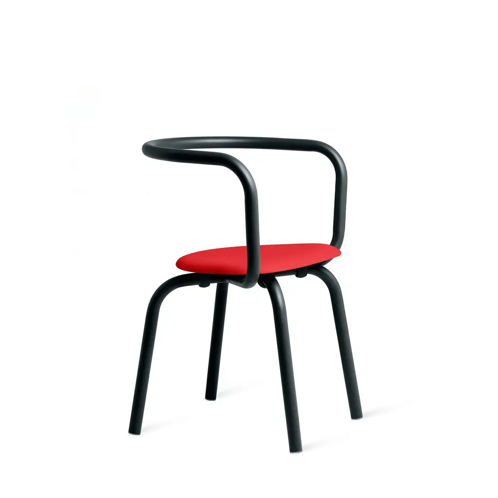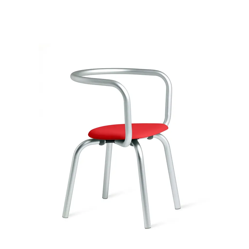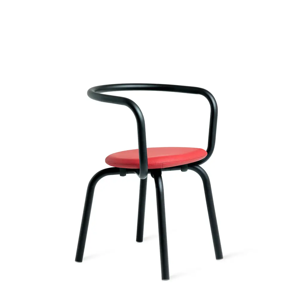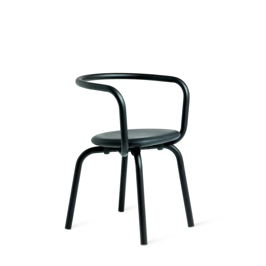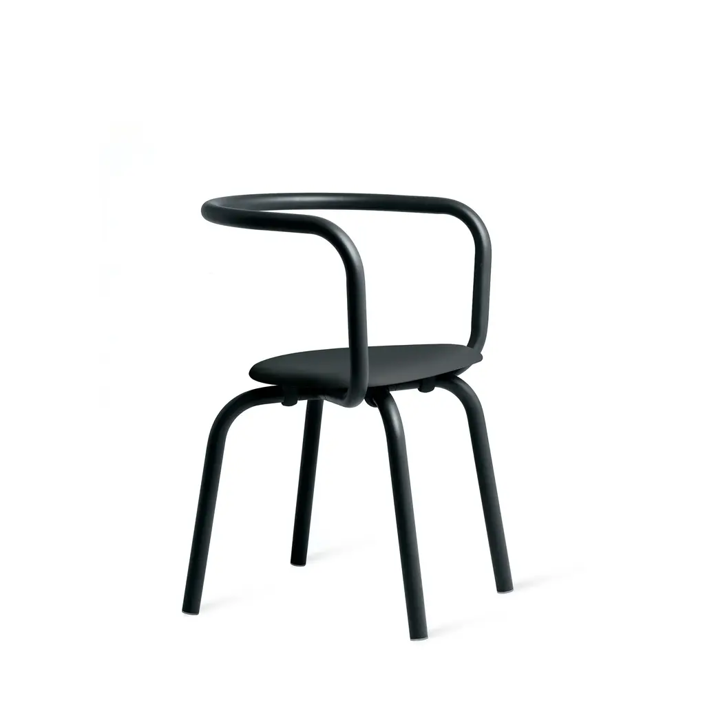 Parrish by Konstantin Grcic, 2013 The Parrish Collection was originally designed for the Parrish Art Museum in New York. Just like the modest museum building holds an internal complexity, Parrish combines a subtle, timeless design with a heartfelt technical core. The slender chair frame is made of 80% recycled aluminum, available in two finishes, with seats in solid wood or 100% recycled plastic. Designed and built to last, the Parrish side chair is right in any residential, commercial and public setting - indoors and out. Made in USA.