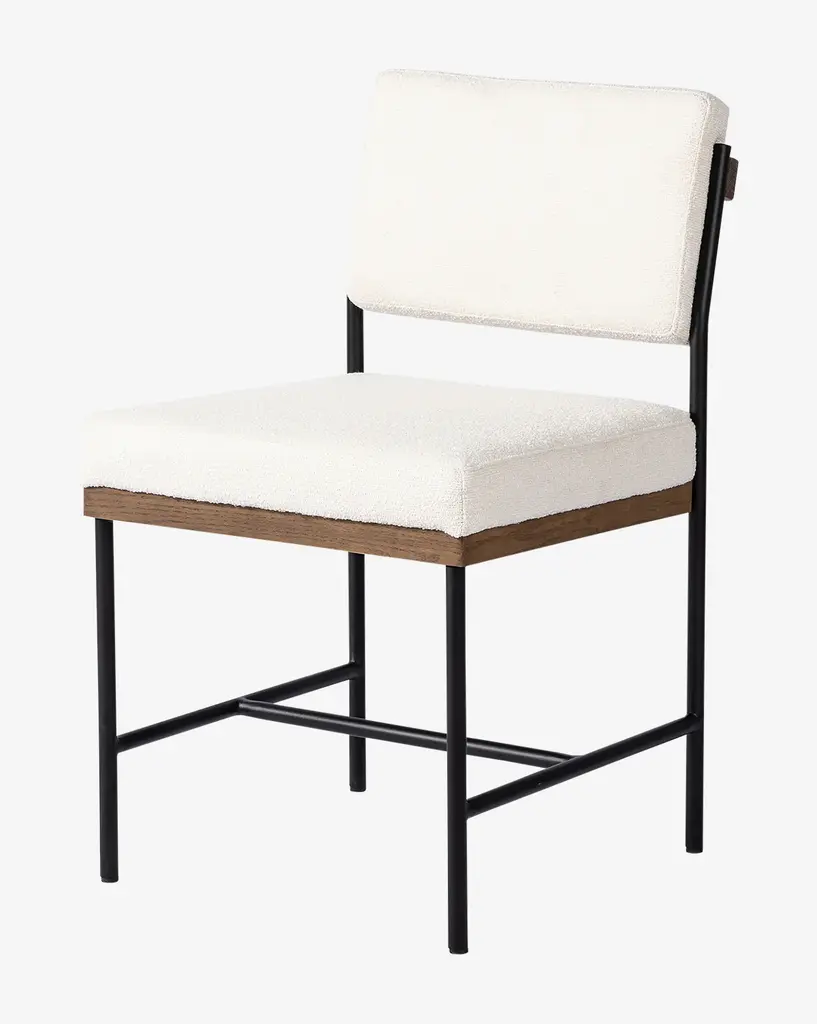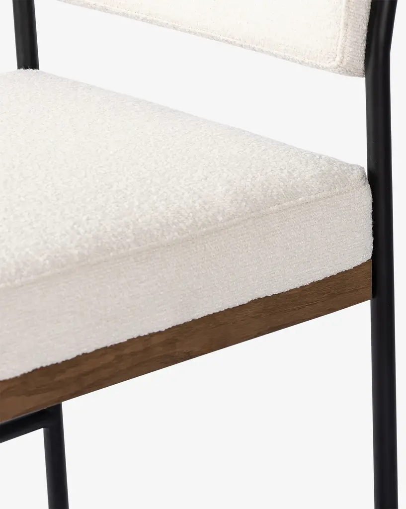 With a timeless mix of materials, the Pascal Dining Chair creates a subtly elevated and inviting feel around your dining table. Its steel and wood structure holds a seat and back cushion in either a cloud or chestnut fabric.