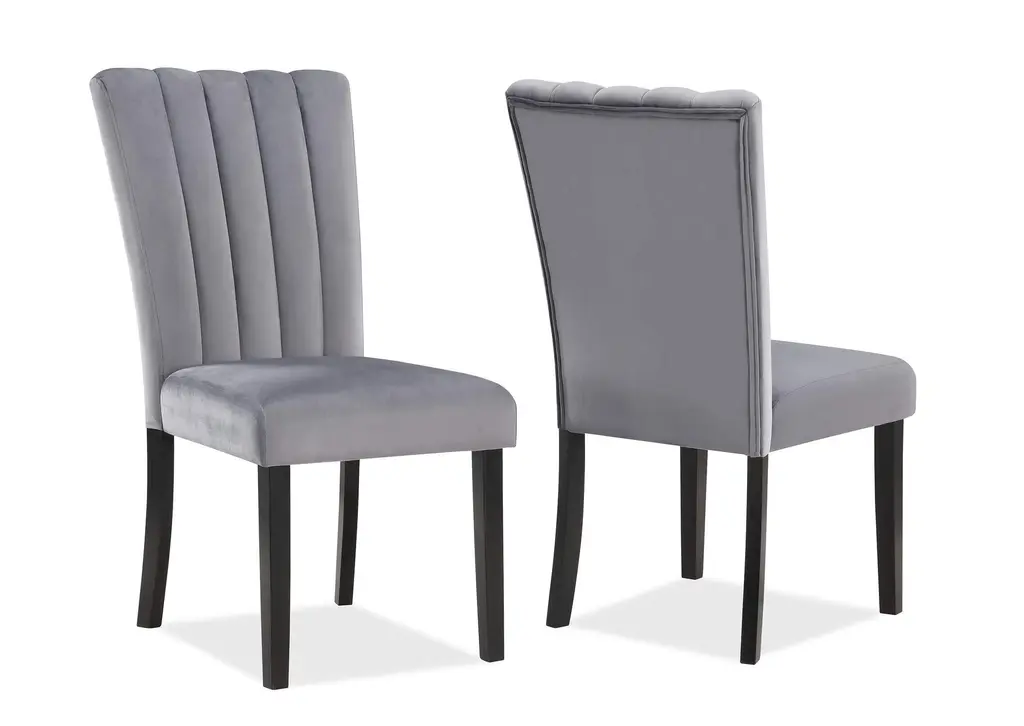 The Pascal Dining Chairs -Set of 2 is upholstered in a soft, grey-colored velvet that is both durable and comfortable to sit on. The standout design feature of the chair is the channel tufting on the seats, which adds a touch of texture to the design making this perfect for both formal and casual dining settings.